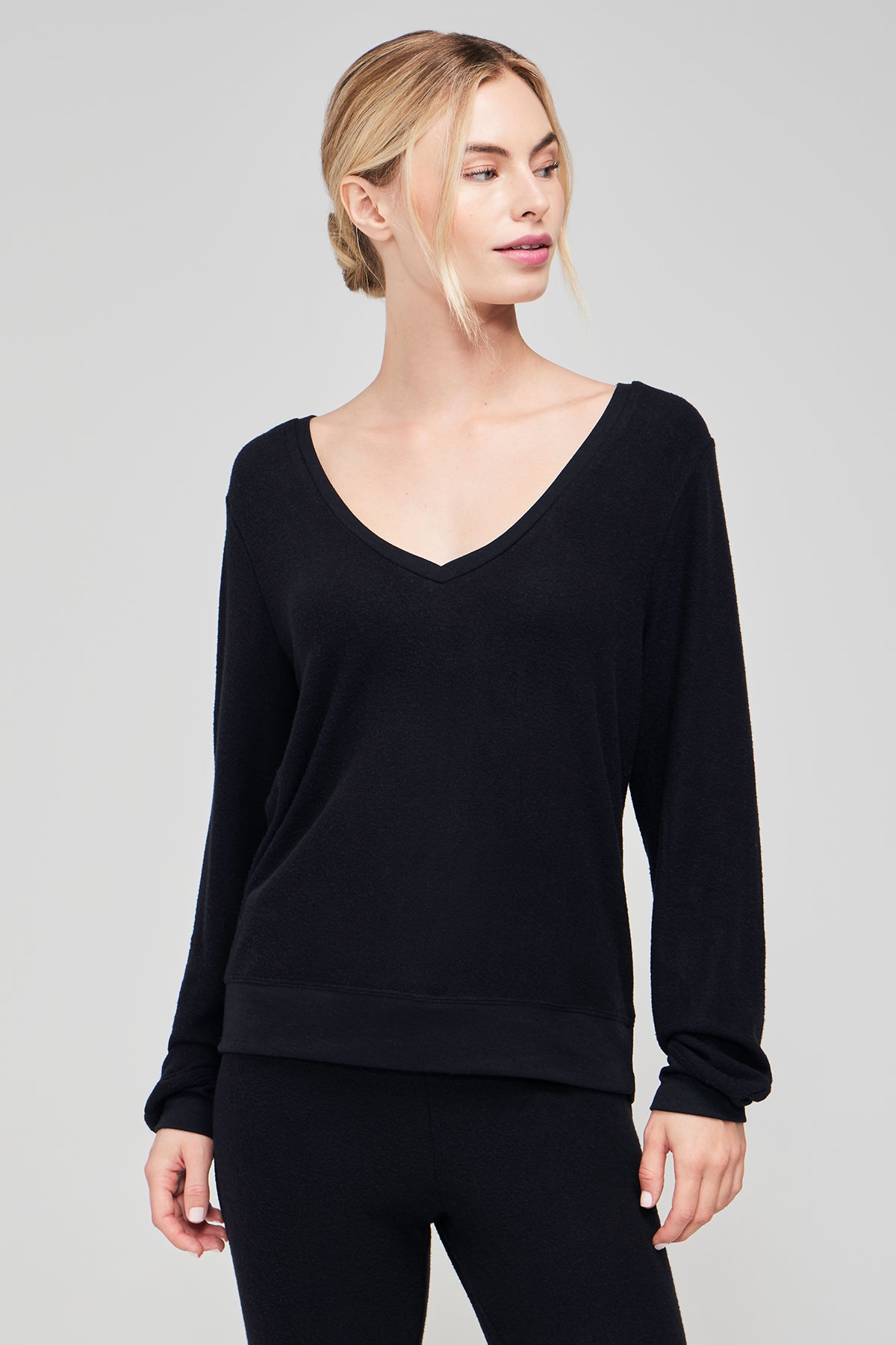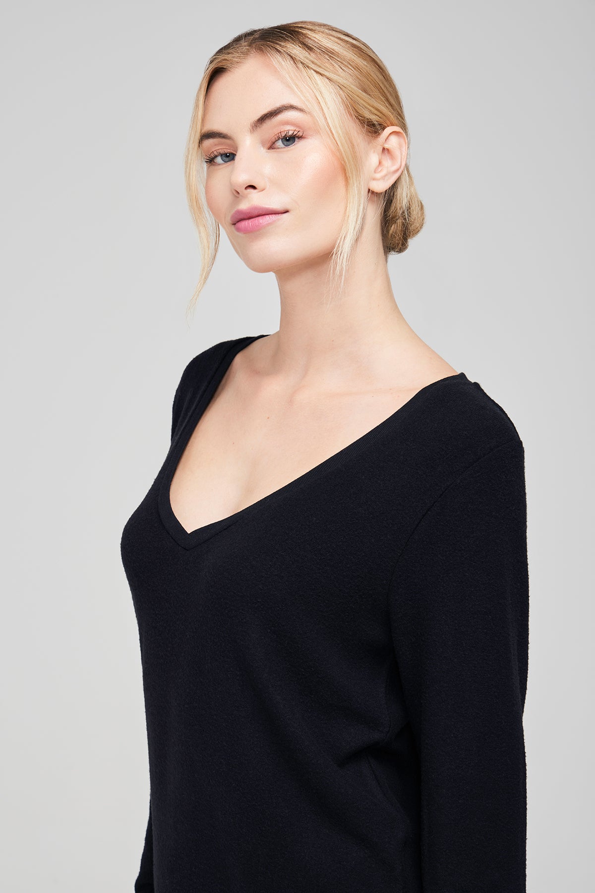 Baggy Beach Jumper Deep V | Jet Black Poly Dye