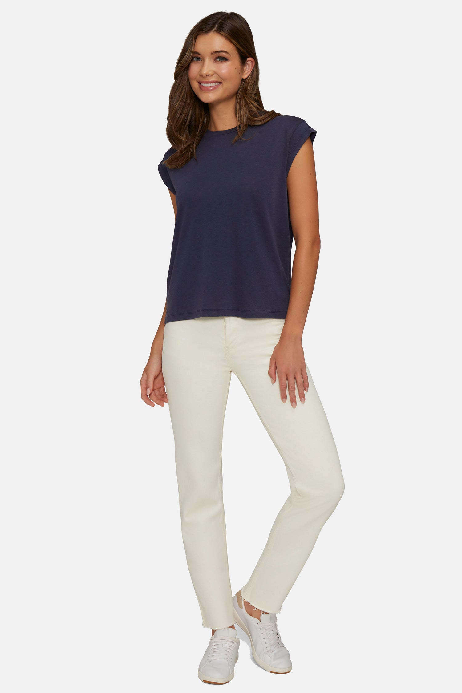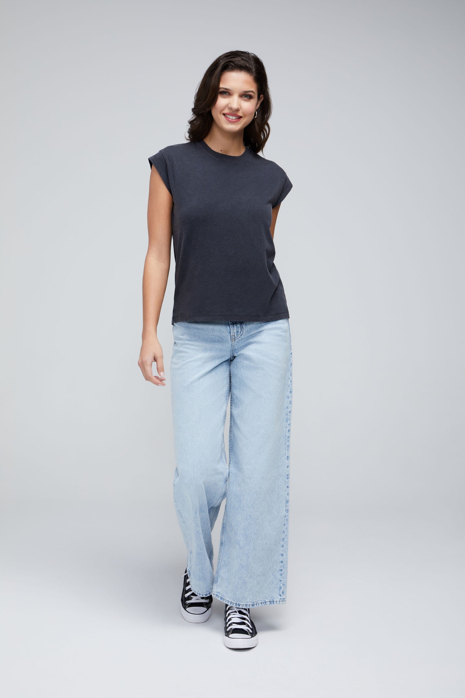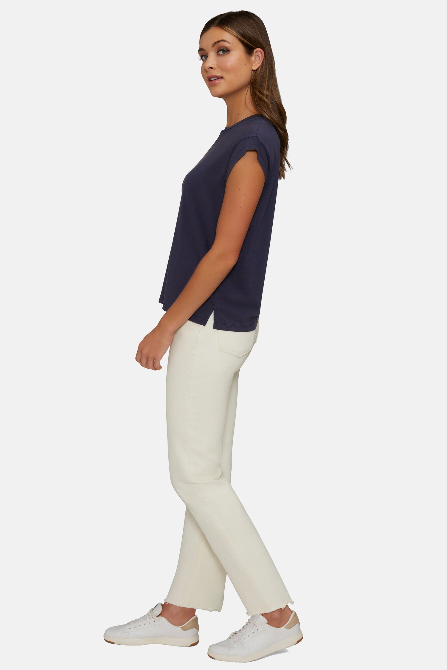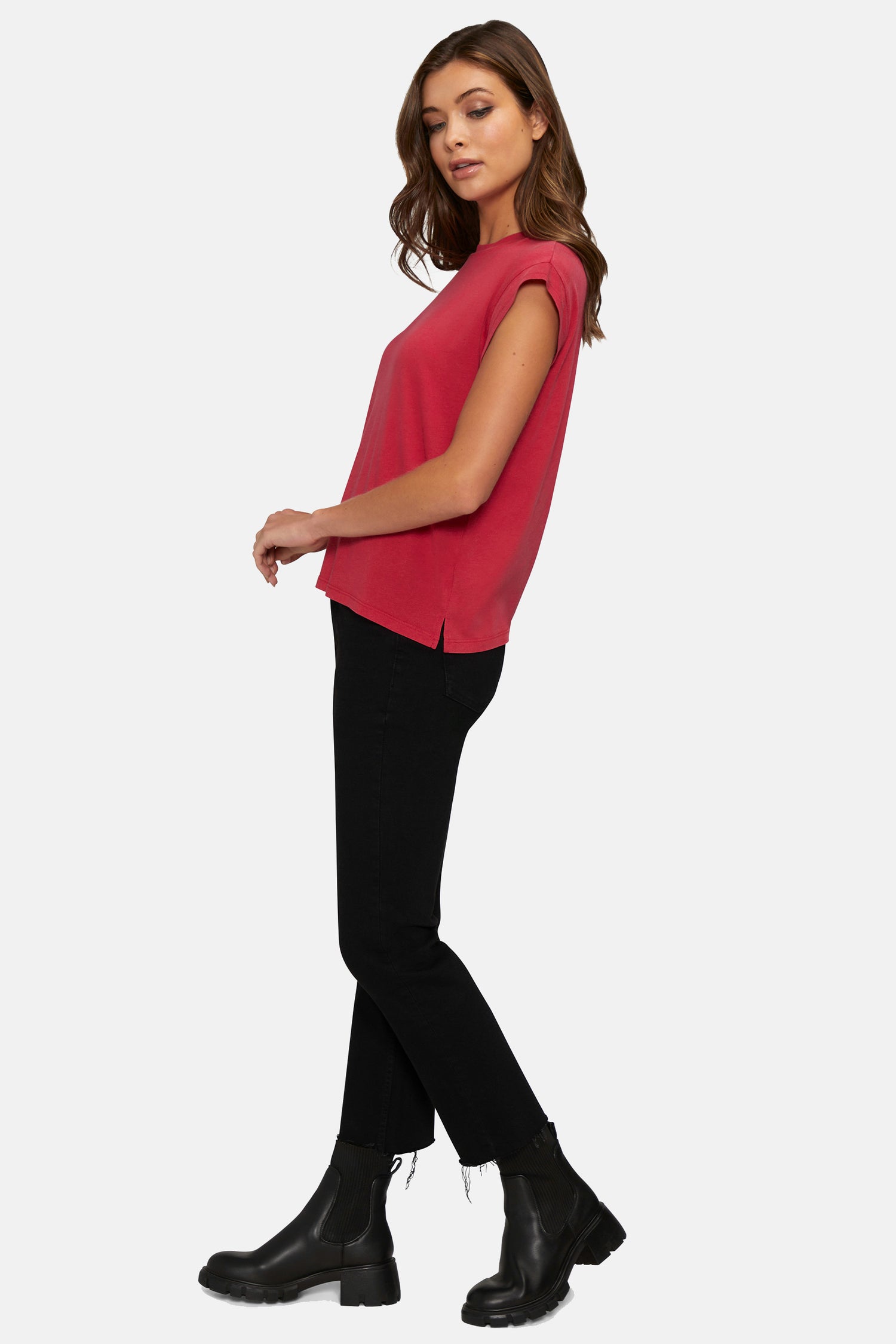 A much cuter variation of the classic gym tank, the Helena Muscle Tee is a boxy, relaxed crewneck in a breathable cotton blend, with dropped shoulders, cap sleeves, and short side slits.
