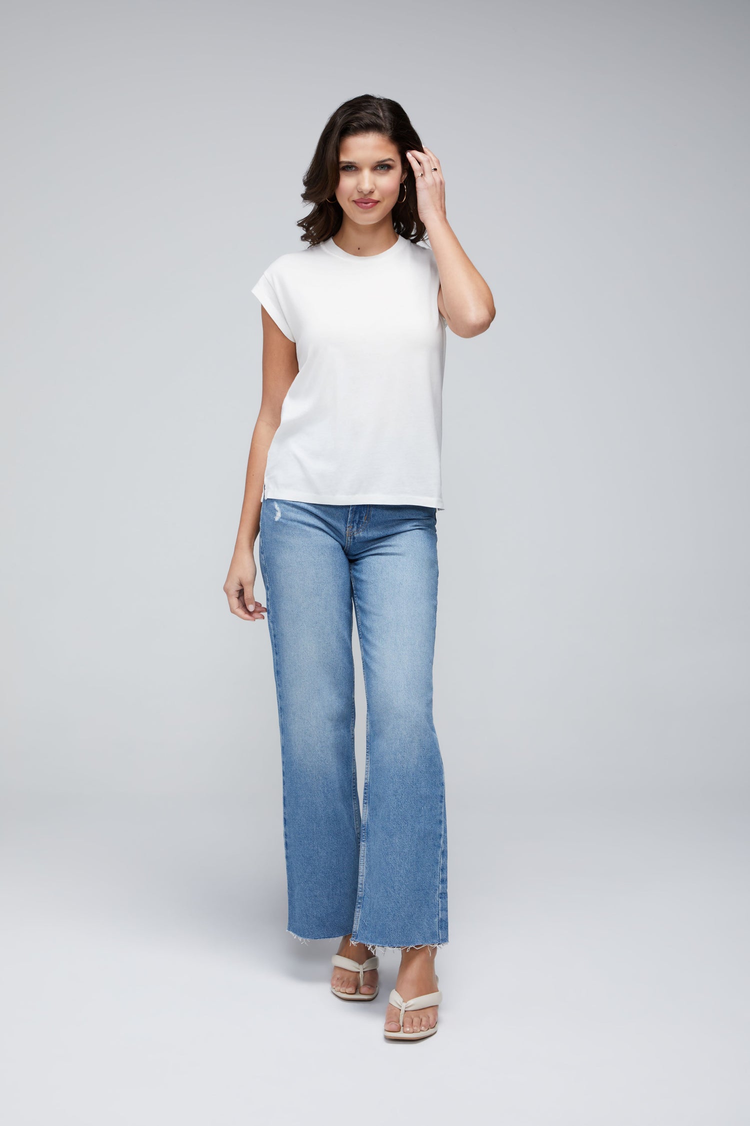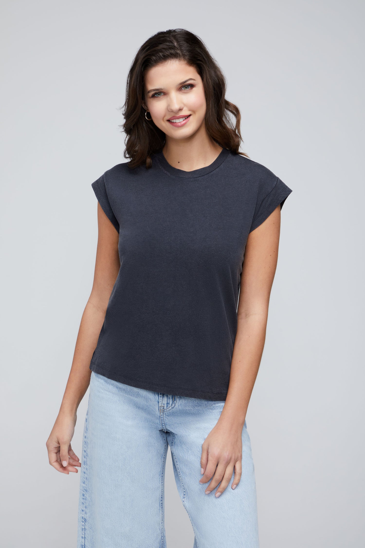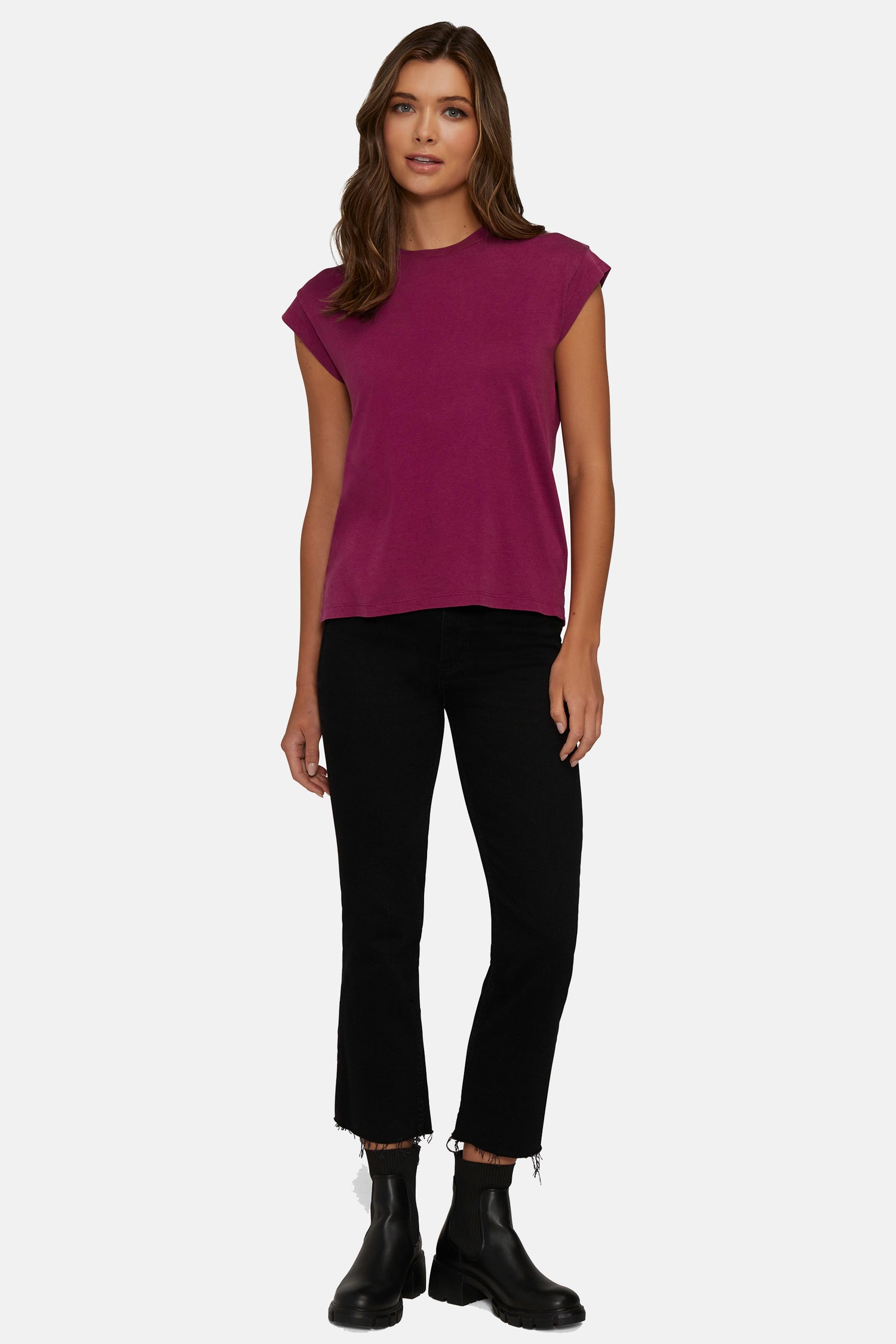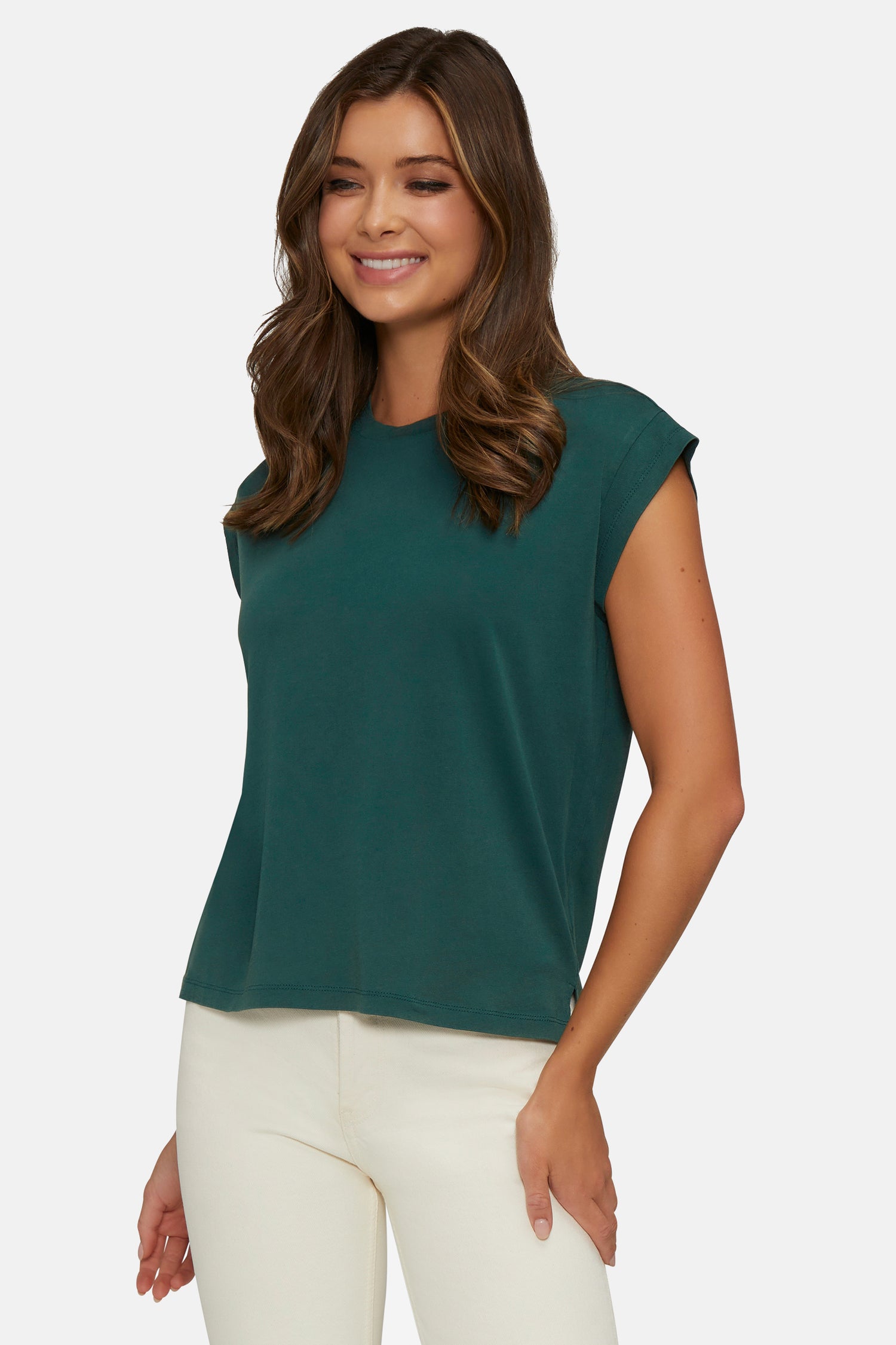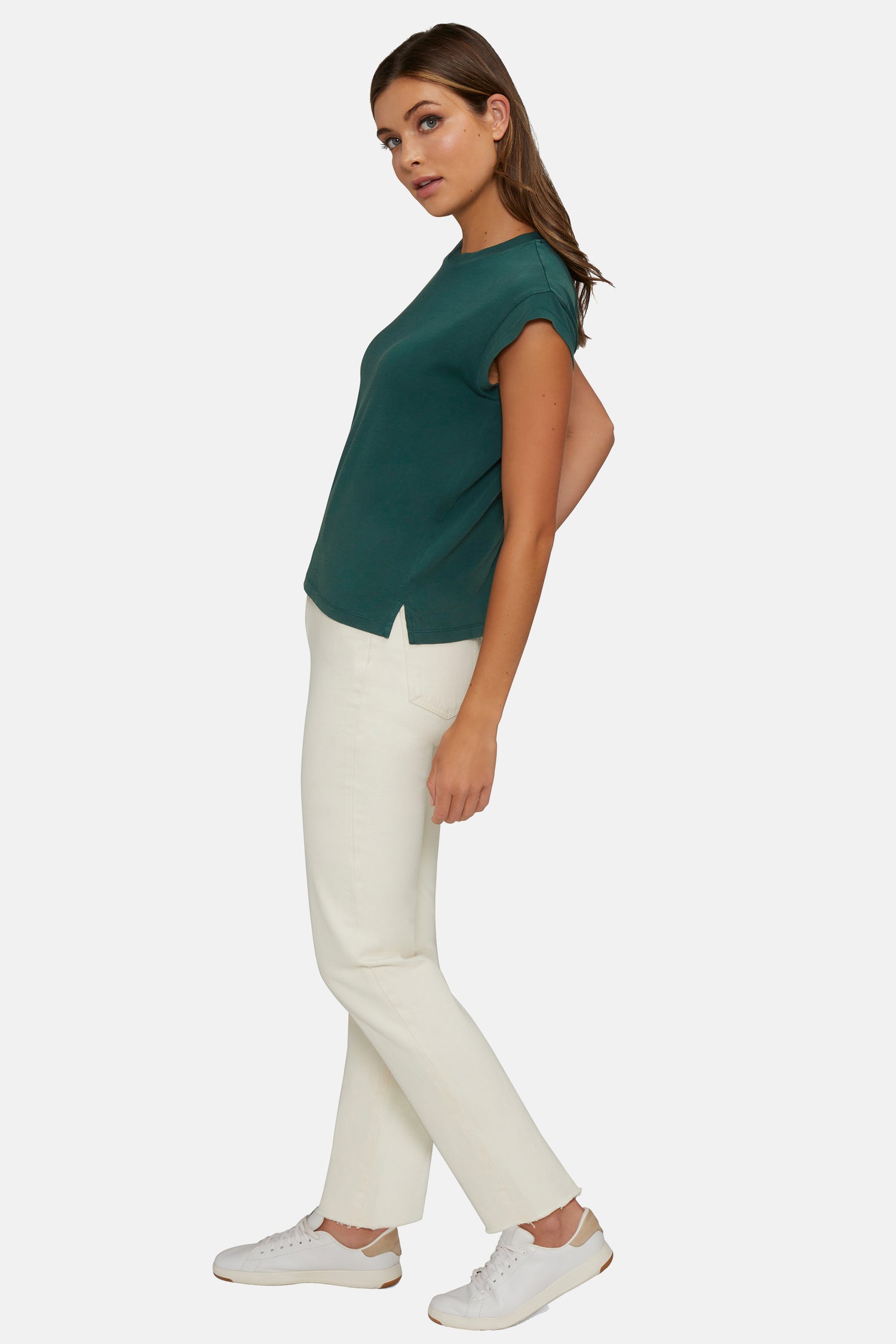 A much cuter variation of the classic gym tank, the Helena Muscle Tee is a boxy, relaxed crewneck in a breathable cotton blend, with dropped shoulders, cap sleeves, and short side slits.