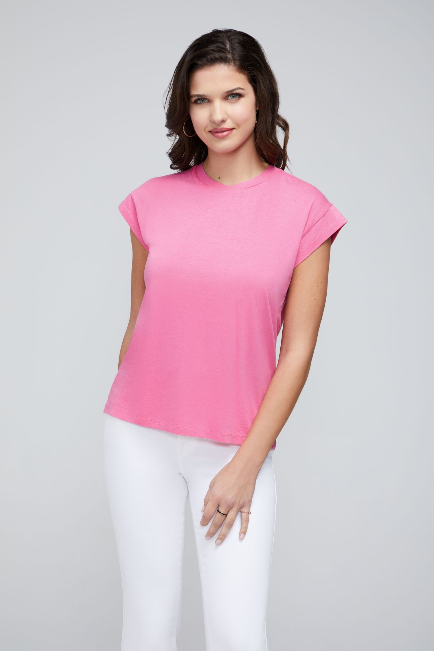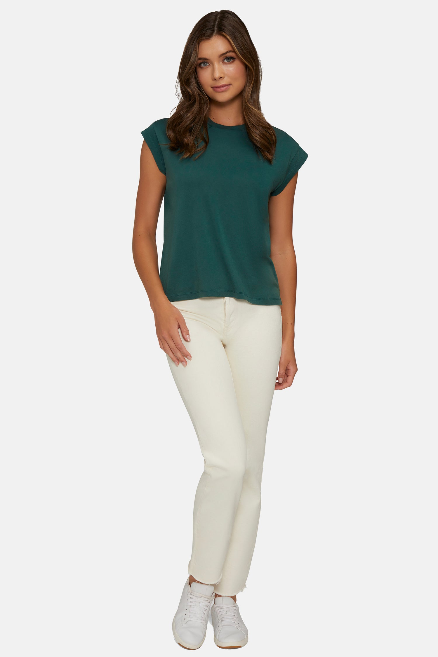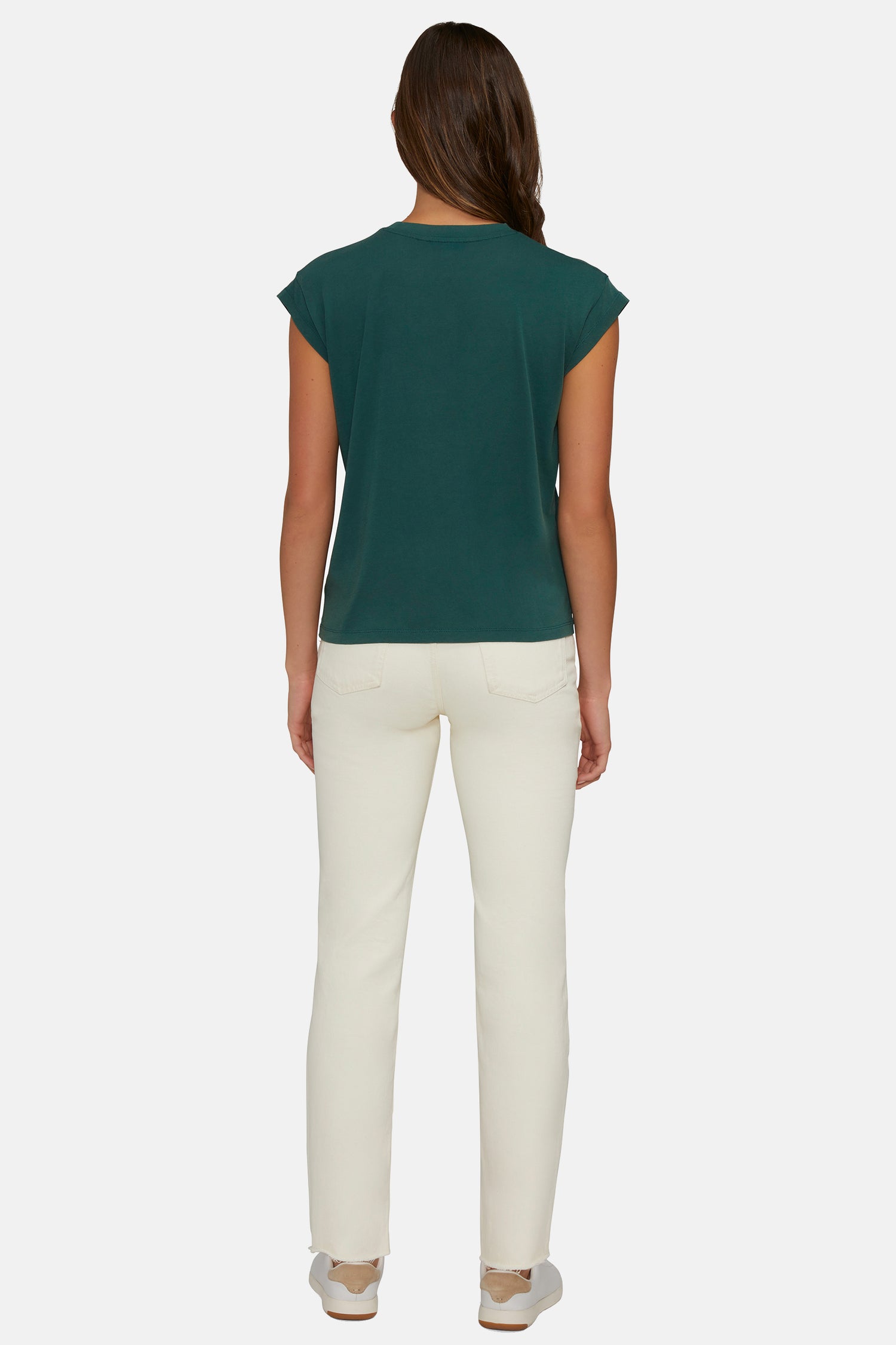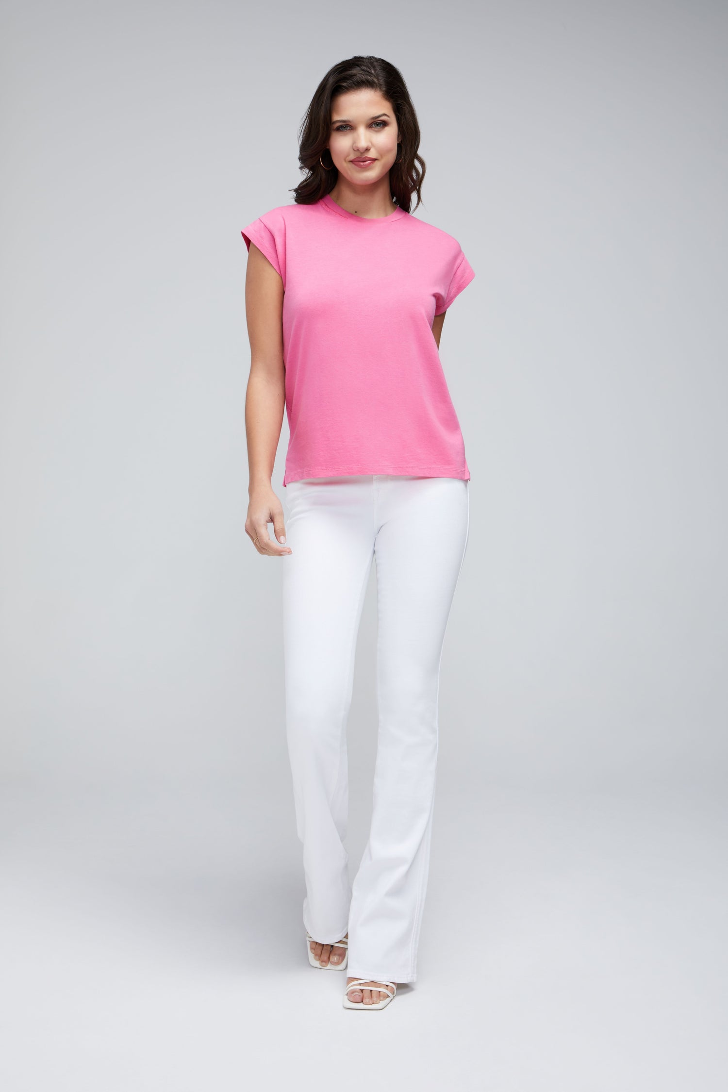 A much cuter variation of the classic gym tank, the Helena Muscle Tee is a boxy, relaxed crewneck in a breathable cotton blend, with dropped shoulders, cap sleeves, and short side slits.