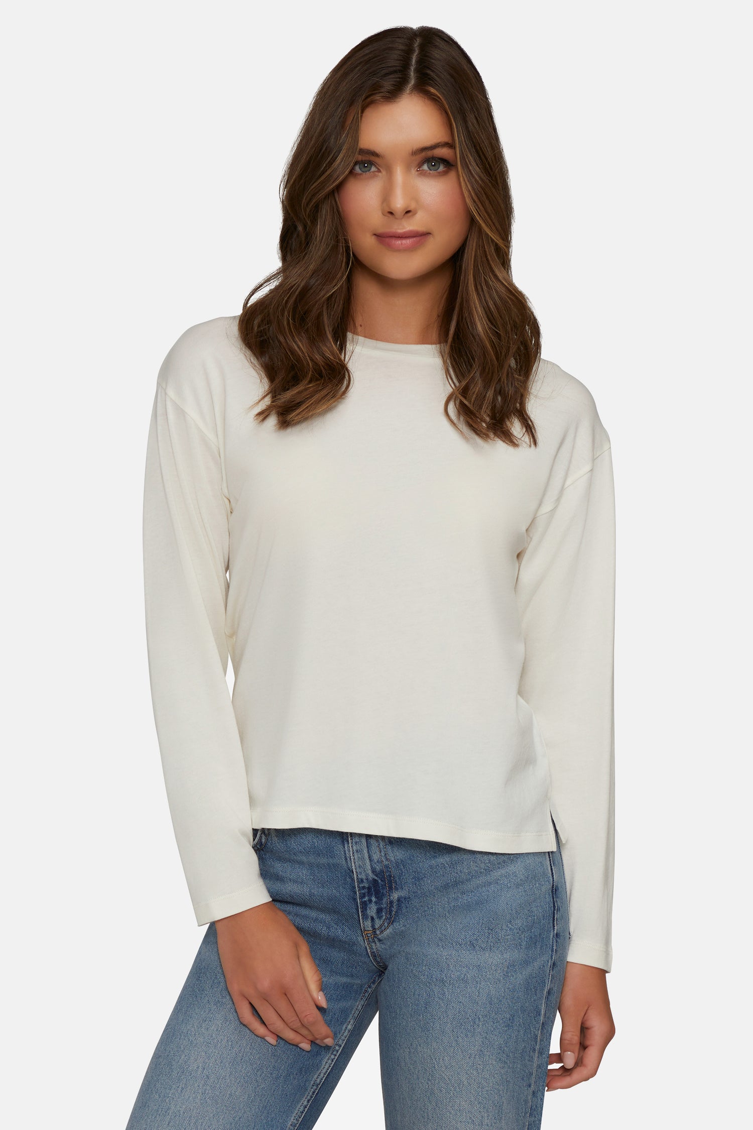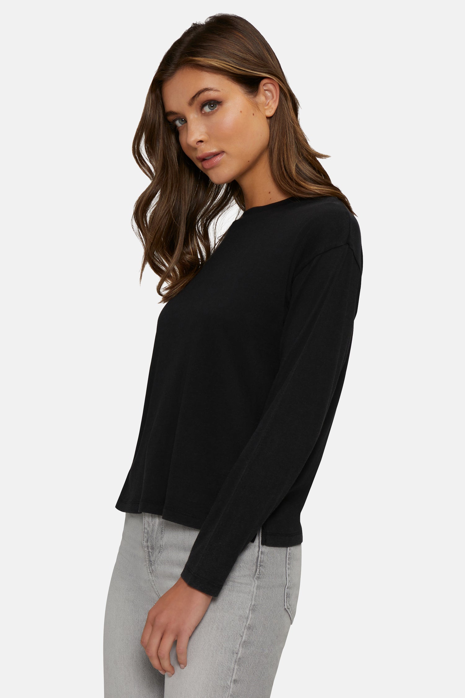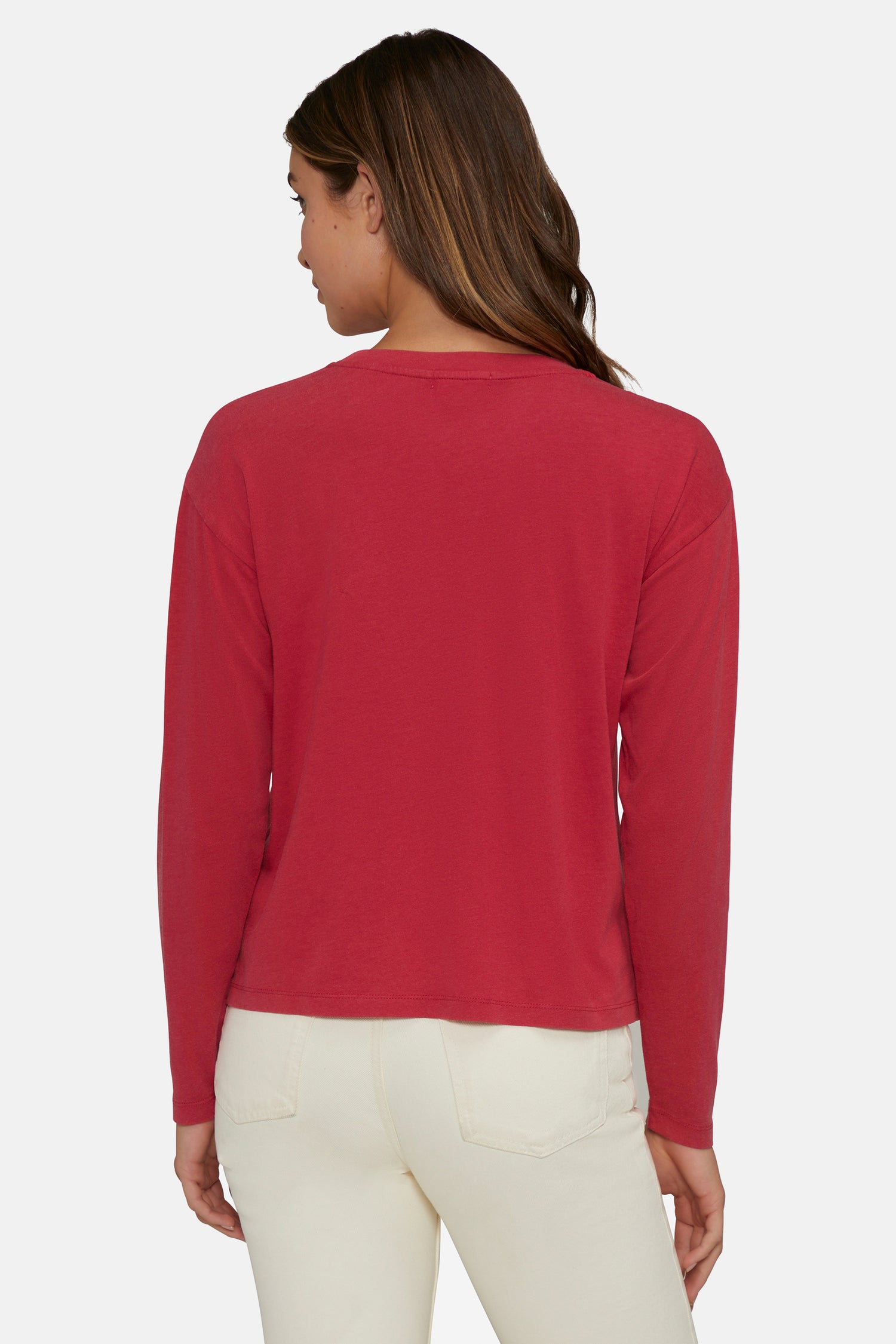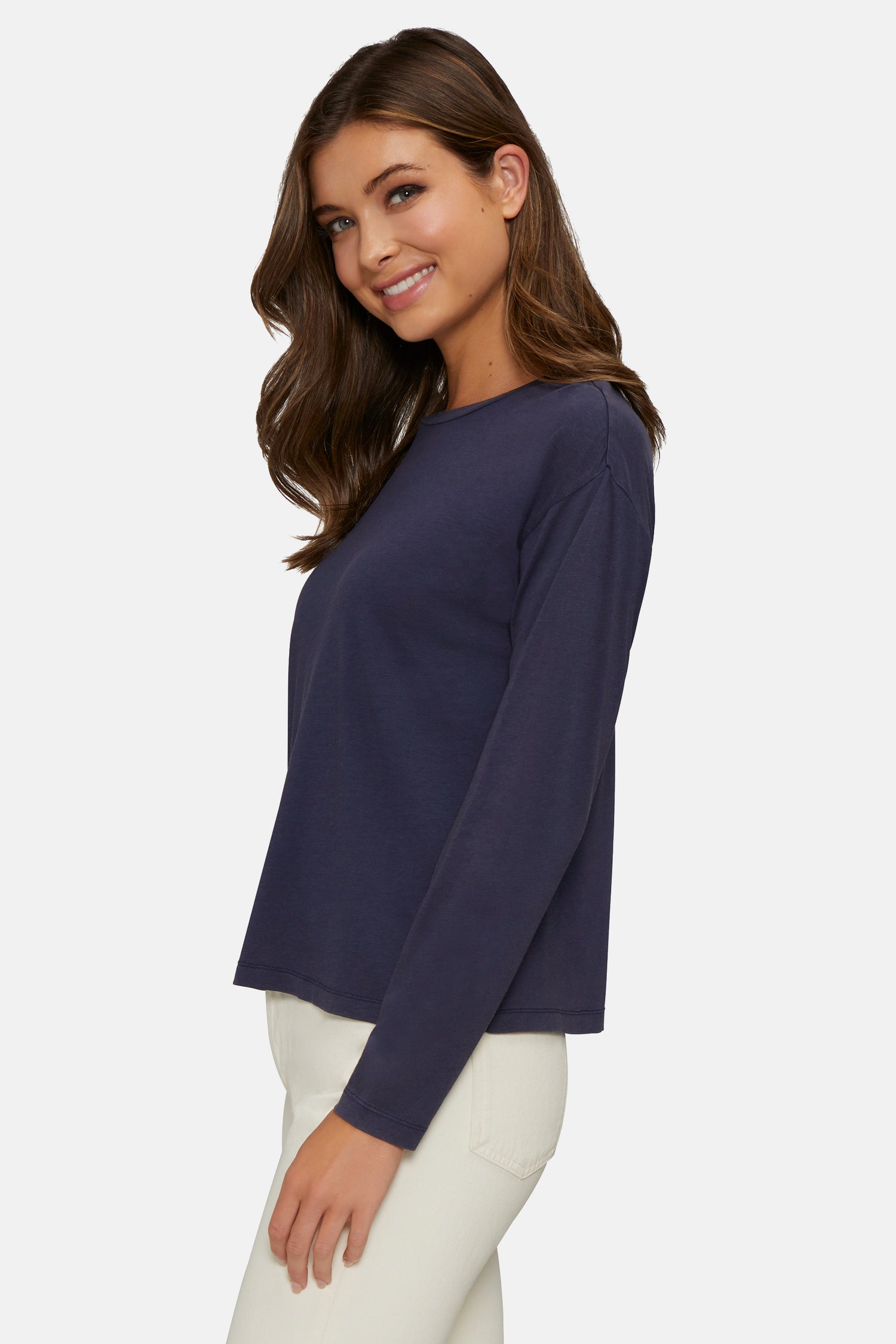 A closet essential to layer or wear alone, the Helena Long Sleeve features dropped shoulders and a classic crew neckline.