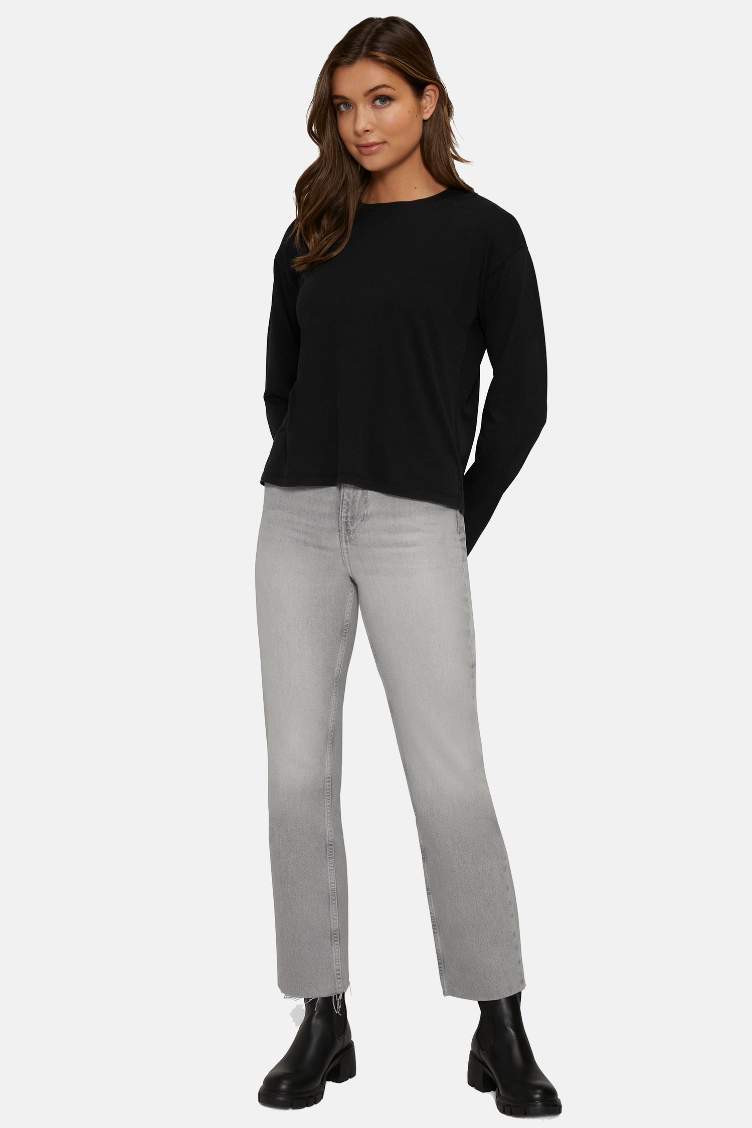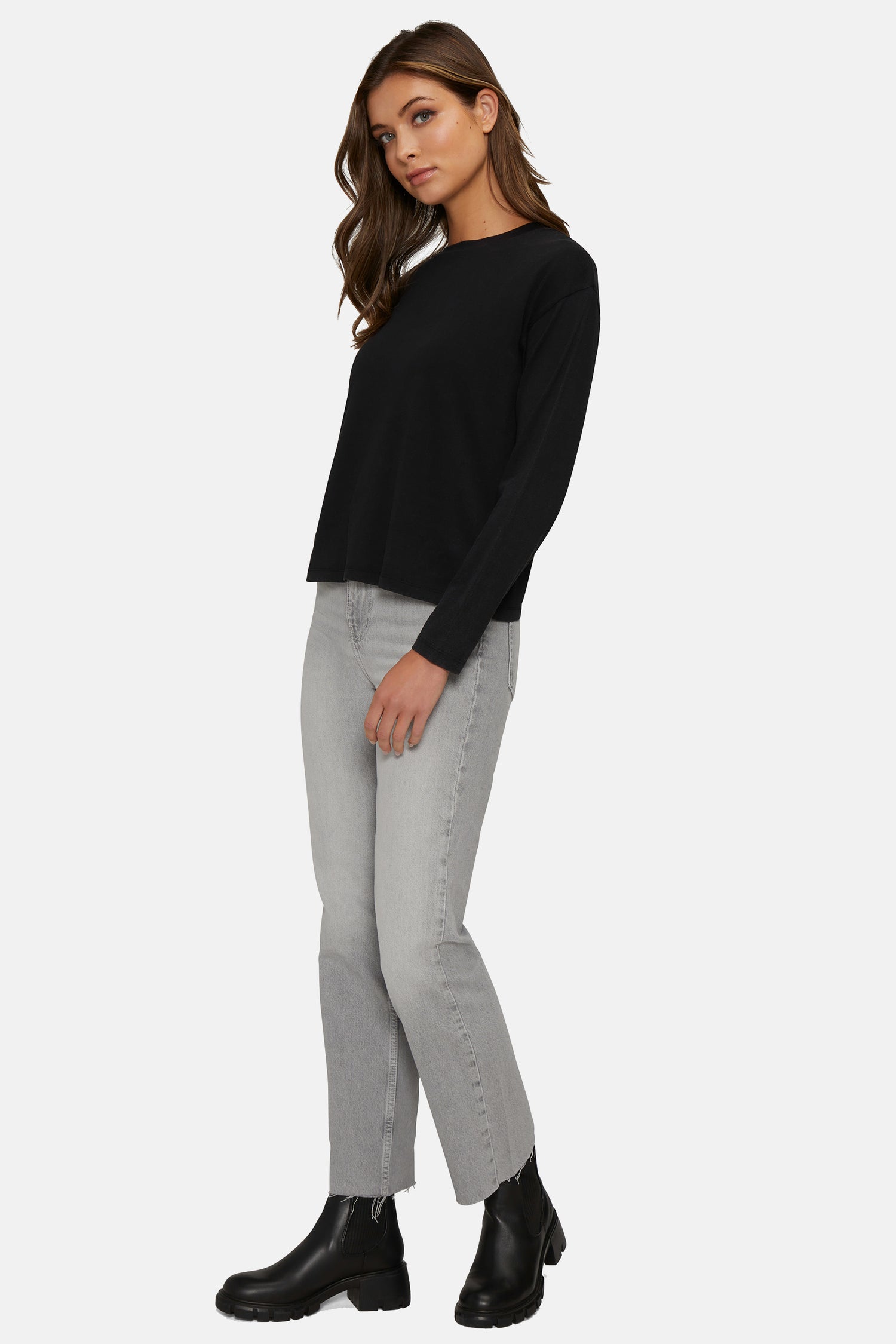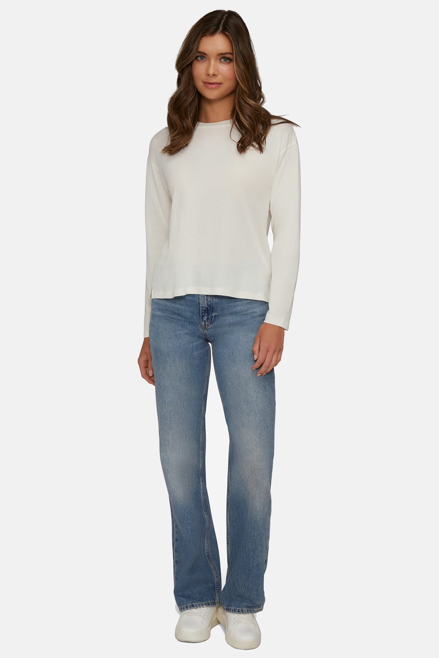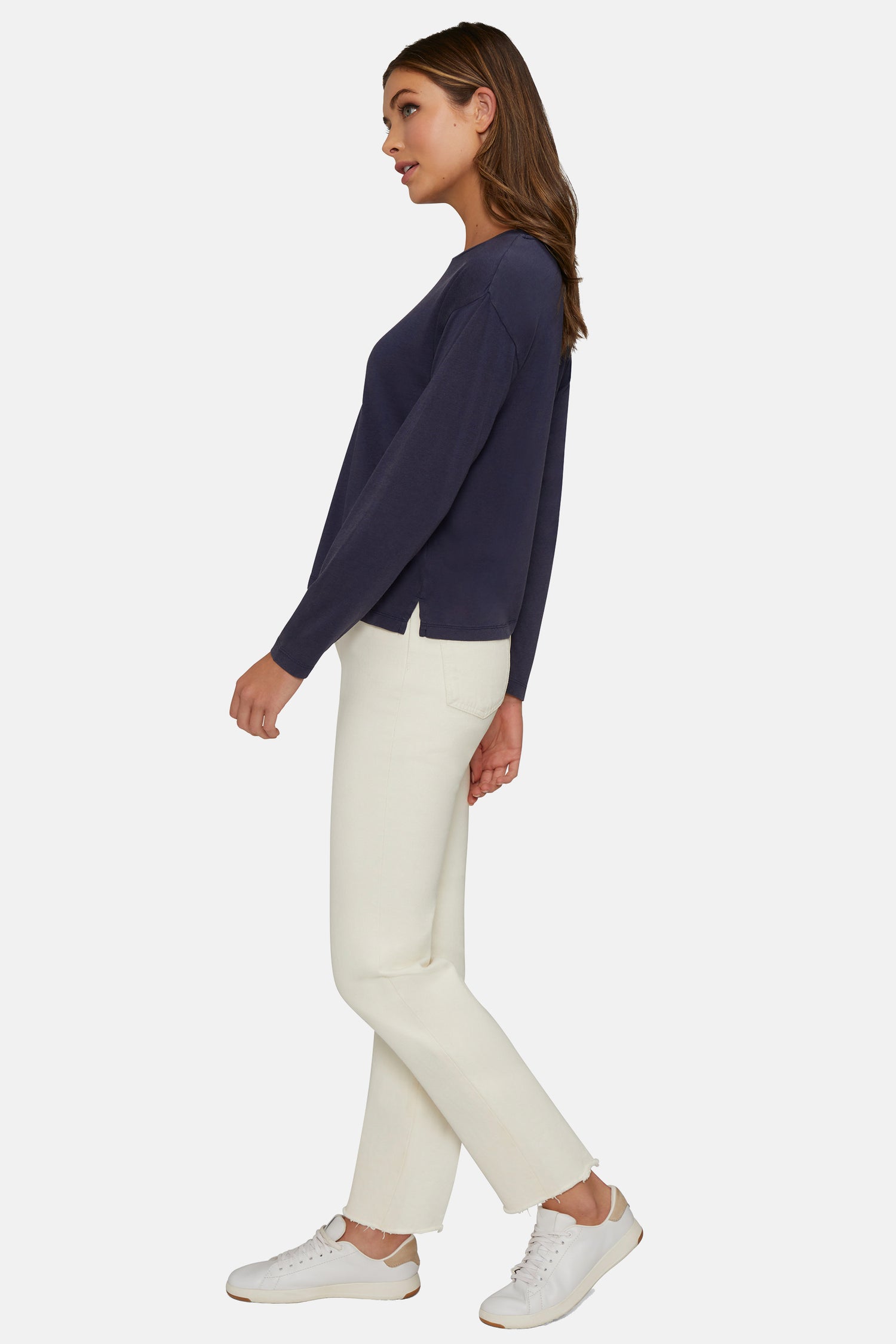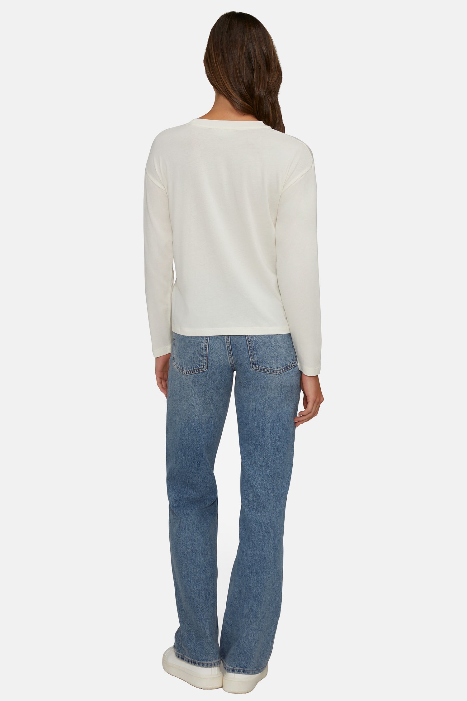 A closet essential to layer or wear alone, the Helena Long Sleeve features dropped shoulders and a classic crew neckline.