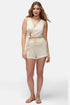 As comfy as it is chic, the vacation-ready Amanda Short features draped side panels with a ringed accent, an invisible rear zipper with a hook-and-eye closure, and a stitched hem for a cuffed look.