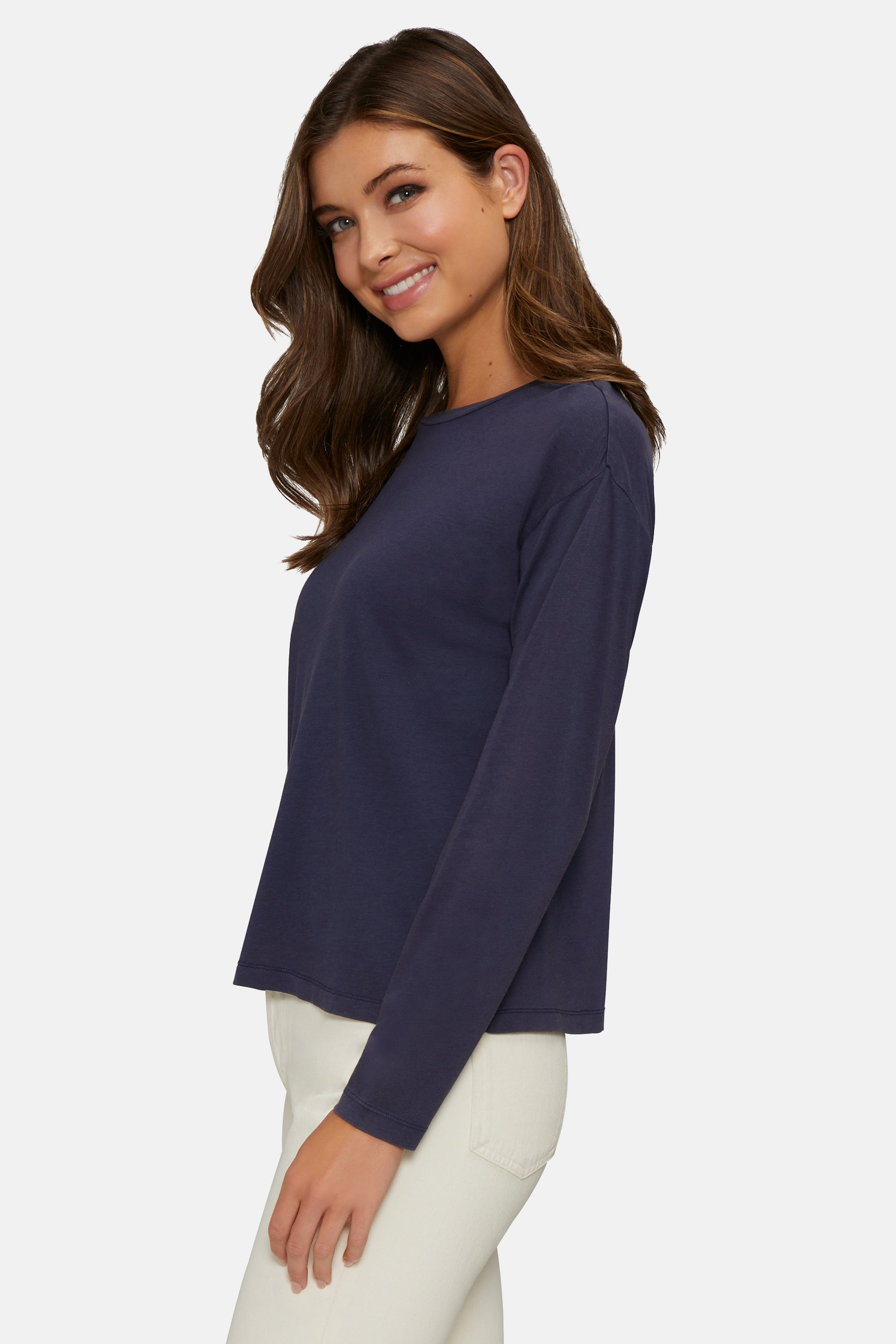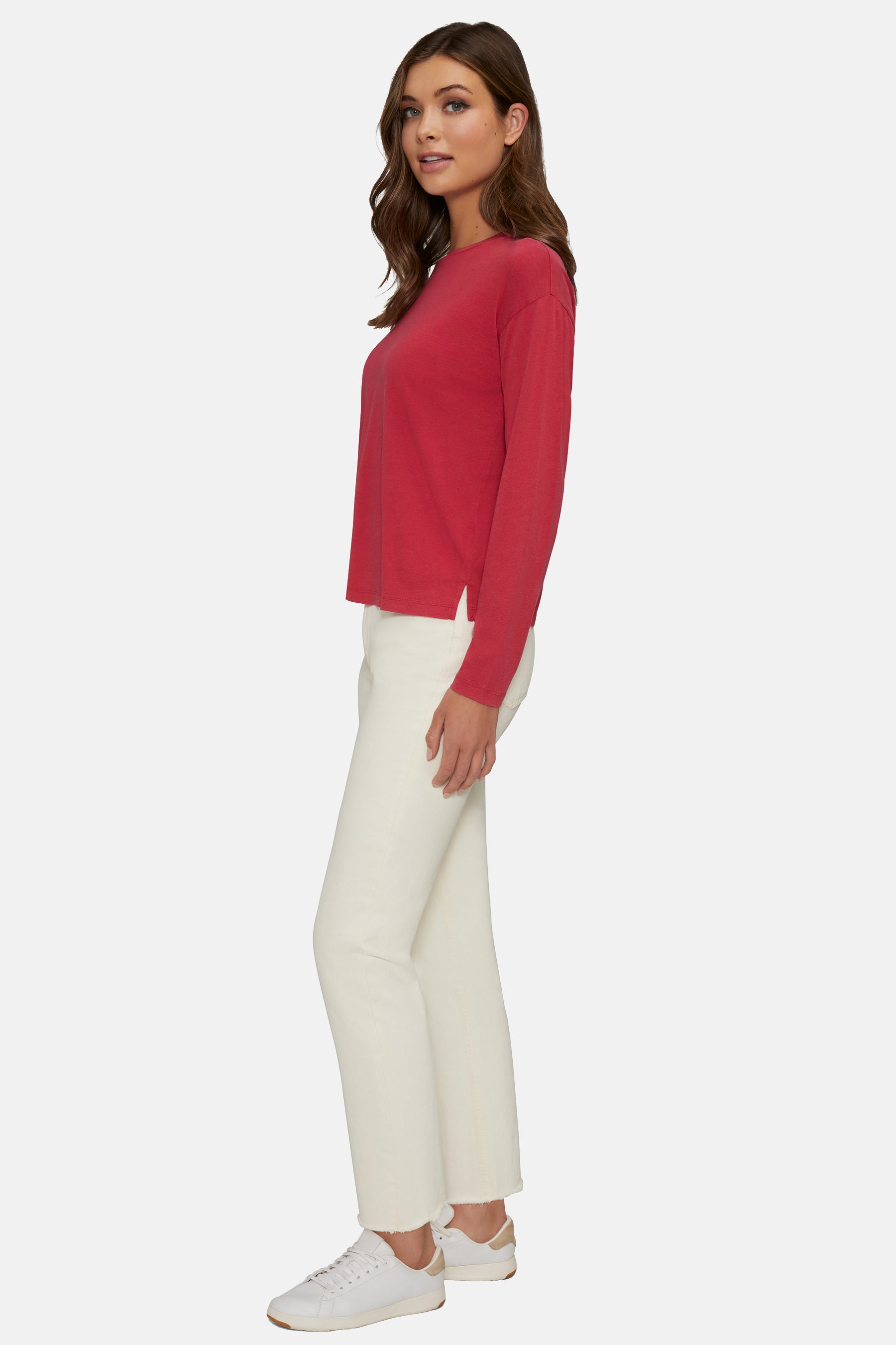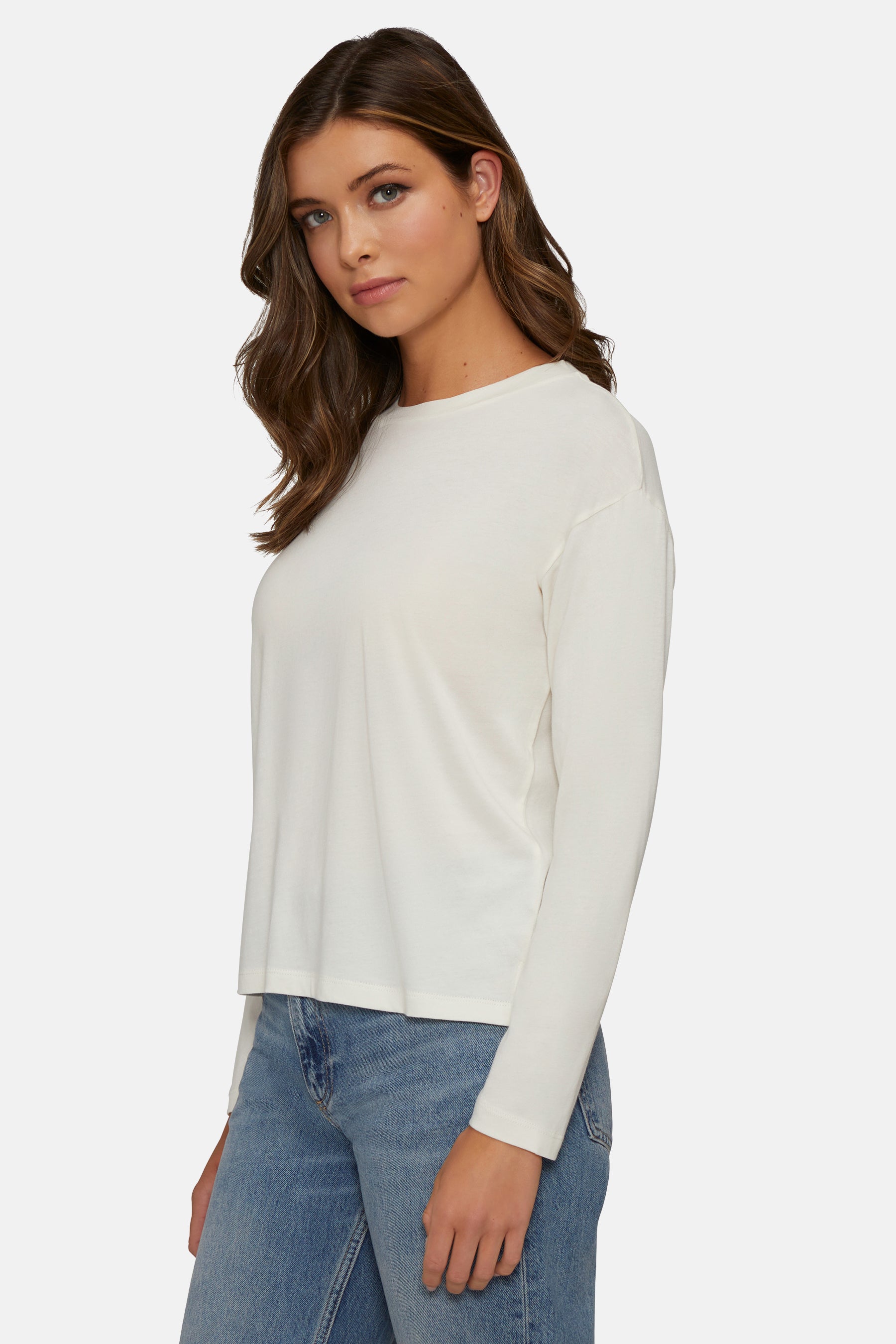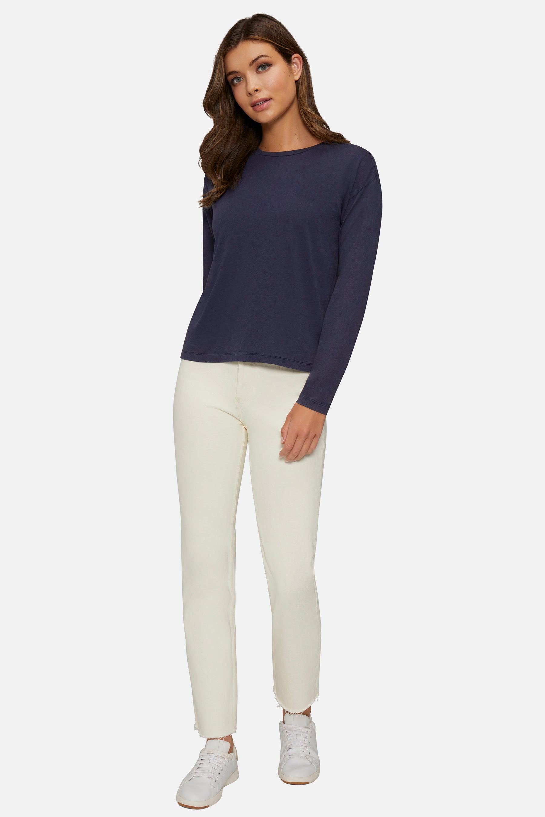 A closet essential to layer or wear alone, the Helena Long Sleeve features dropped shoulders and a classic crew neckline.