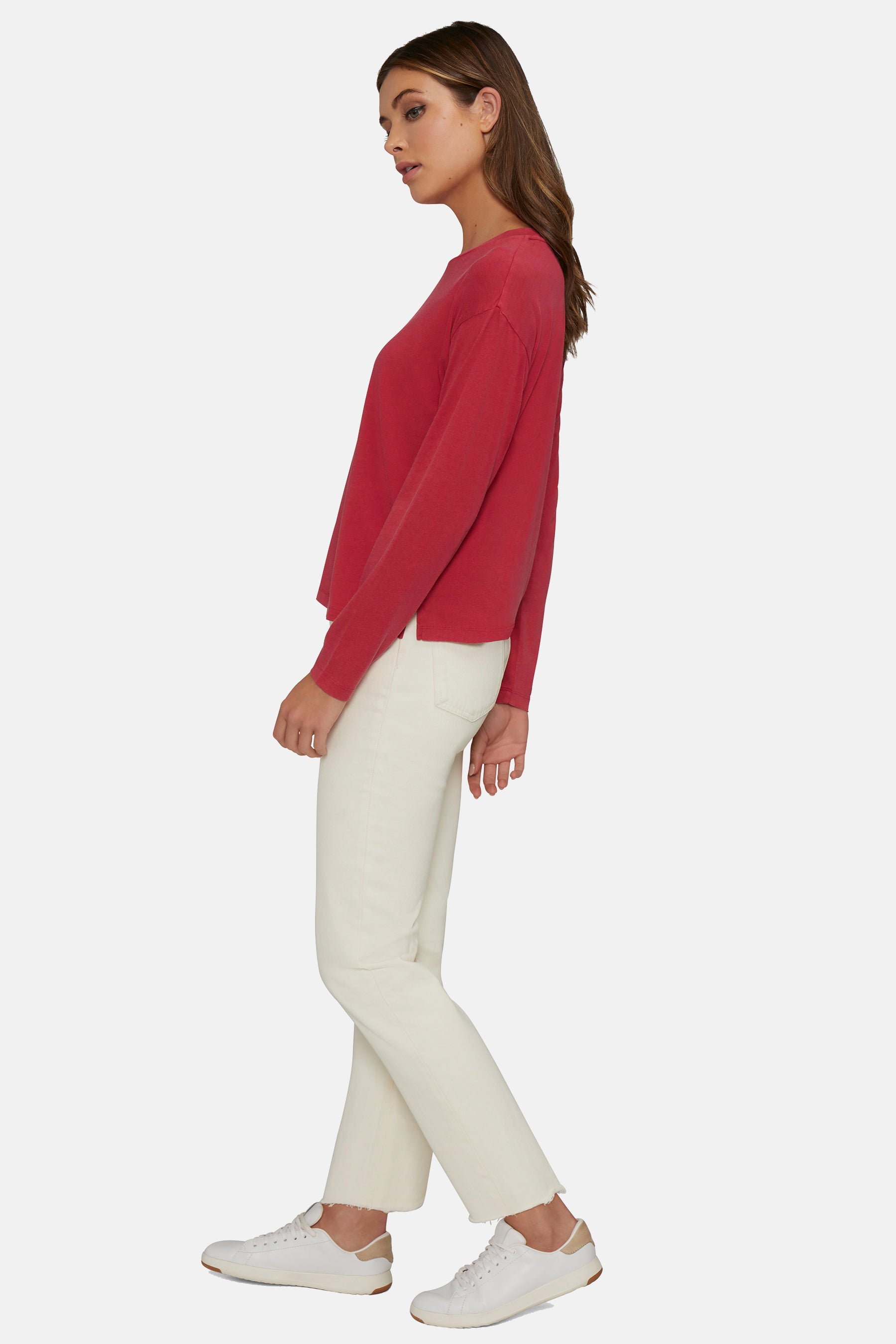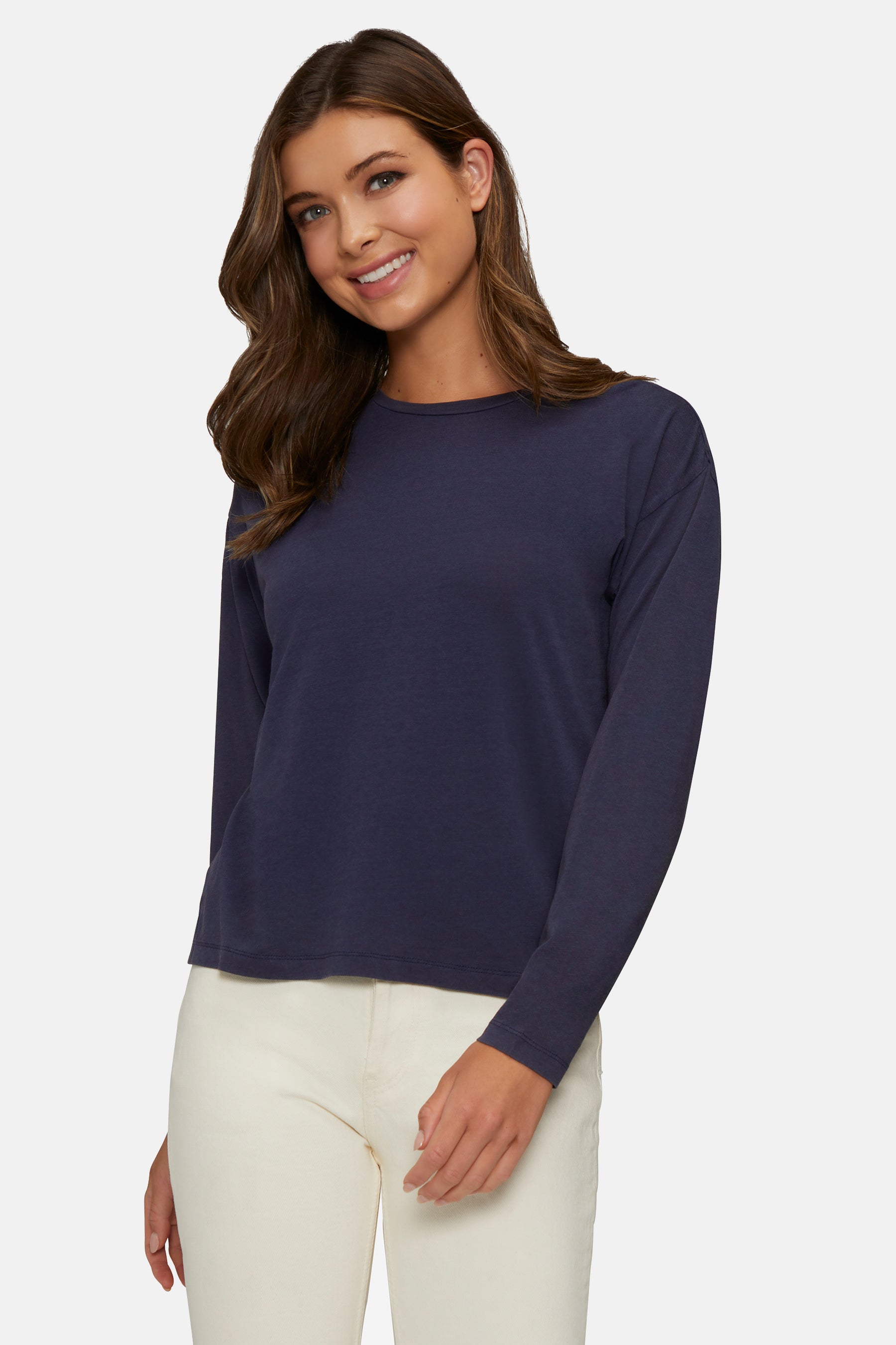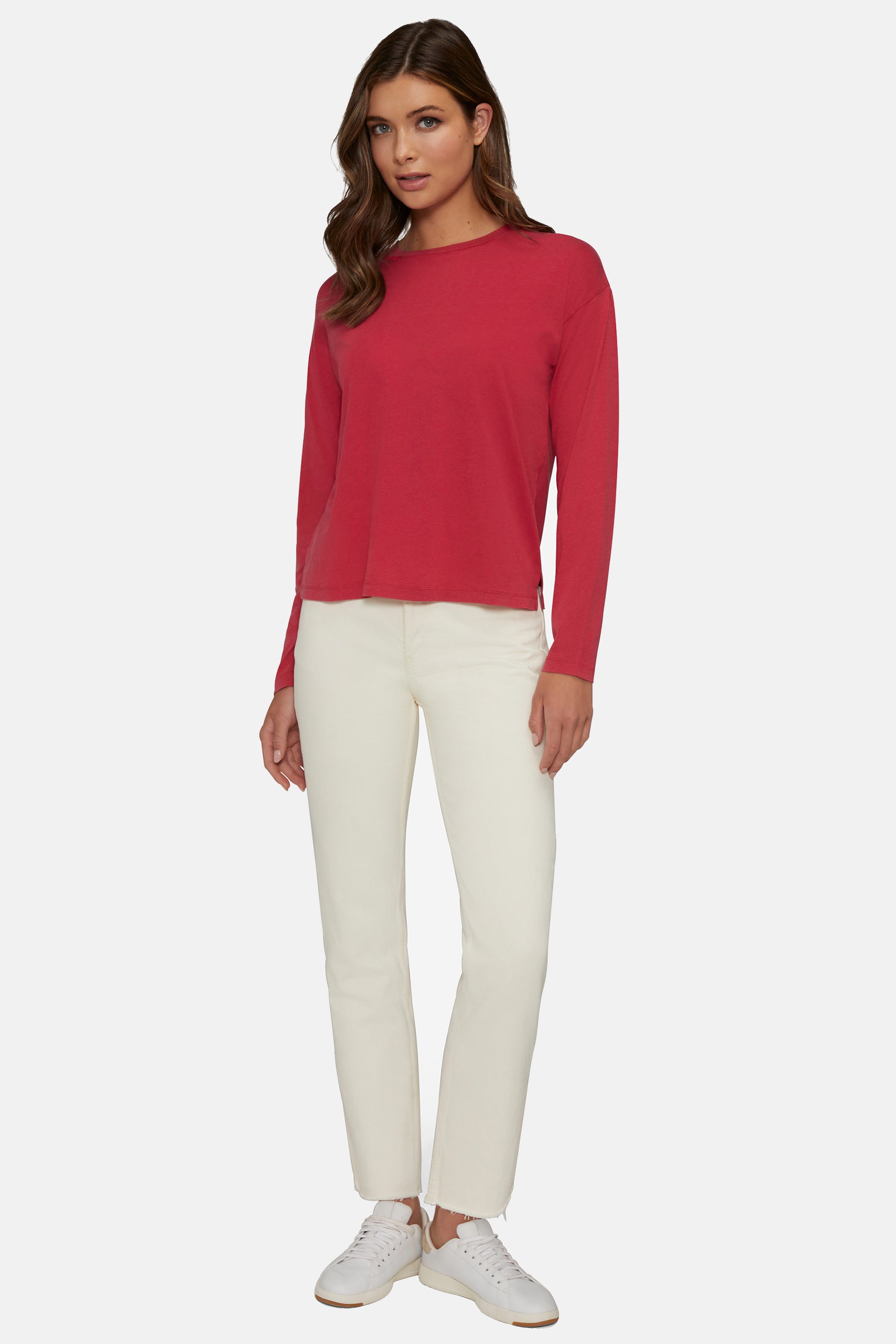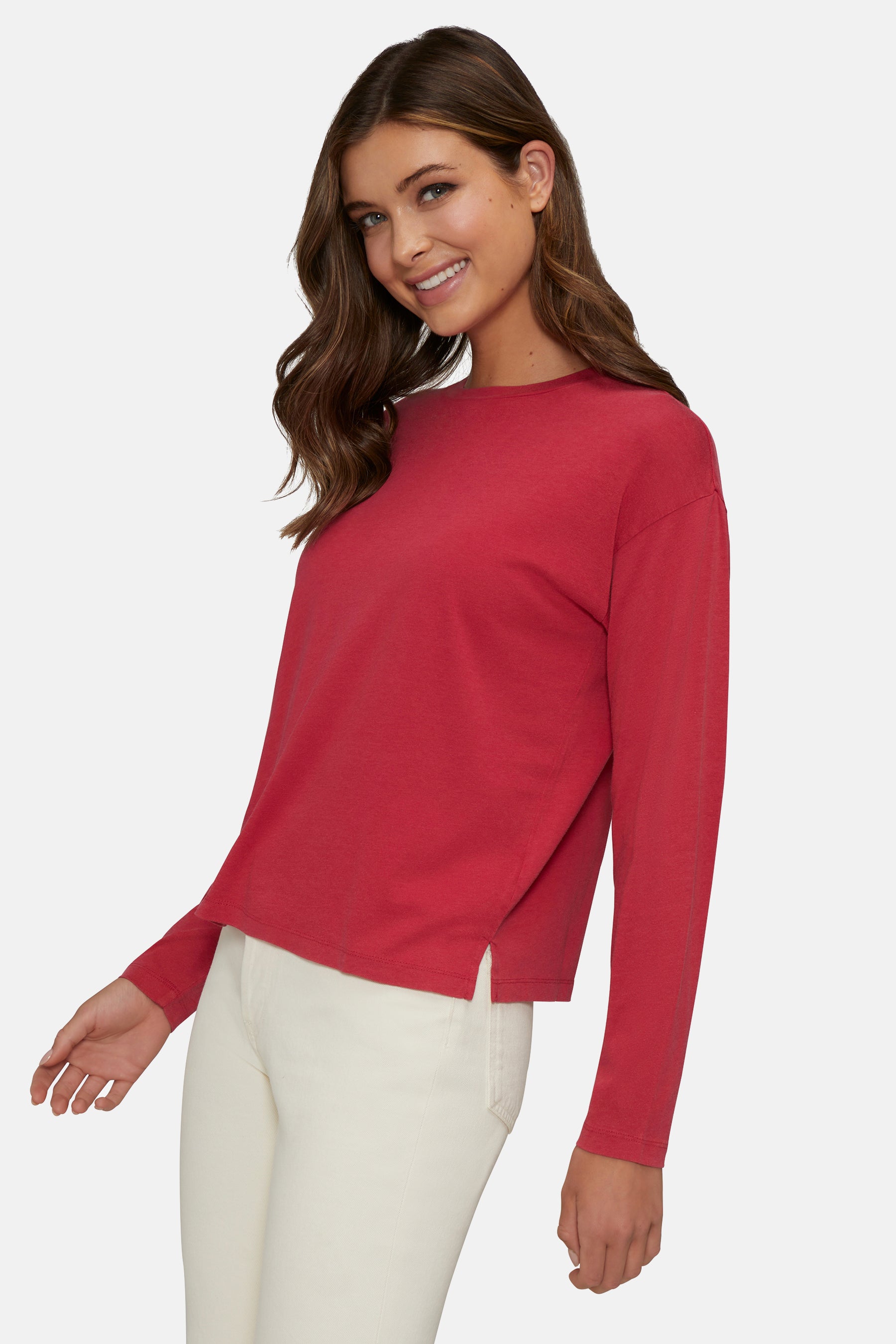 A closet essential to layer or wear alone, the Helena Long Sleeve features dropped shoulders and a classic crew neckline.