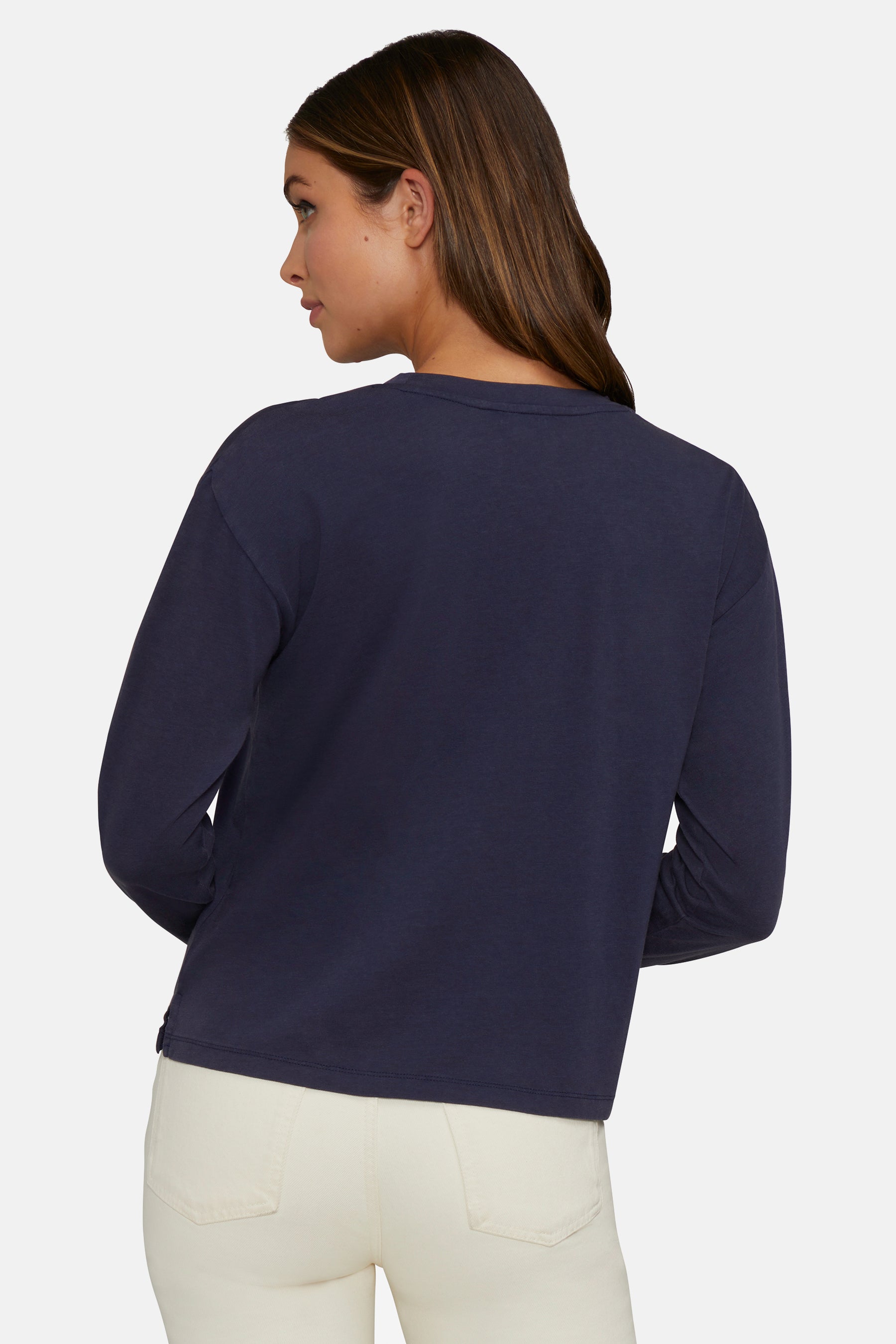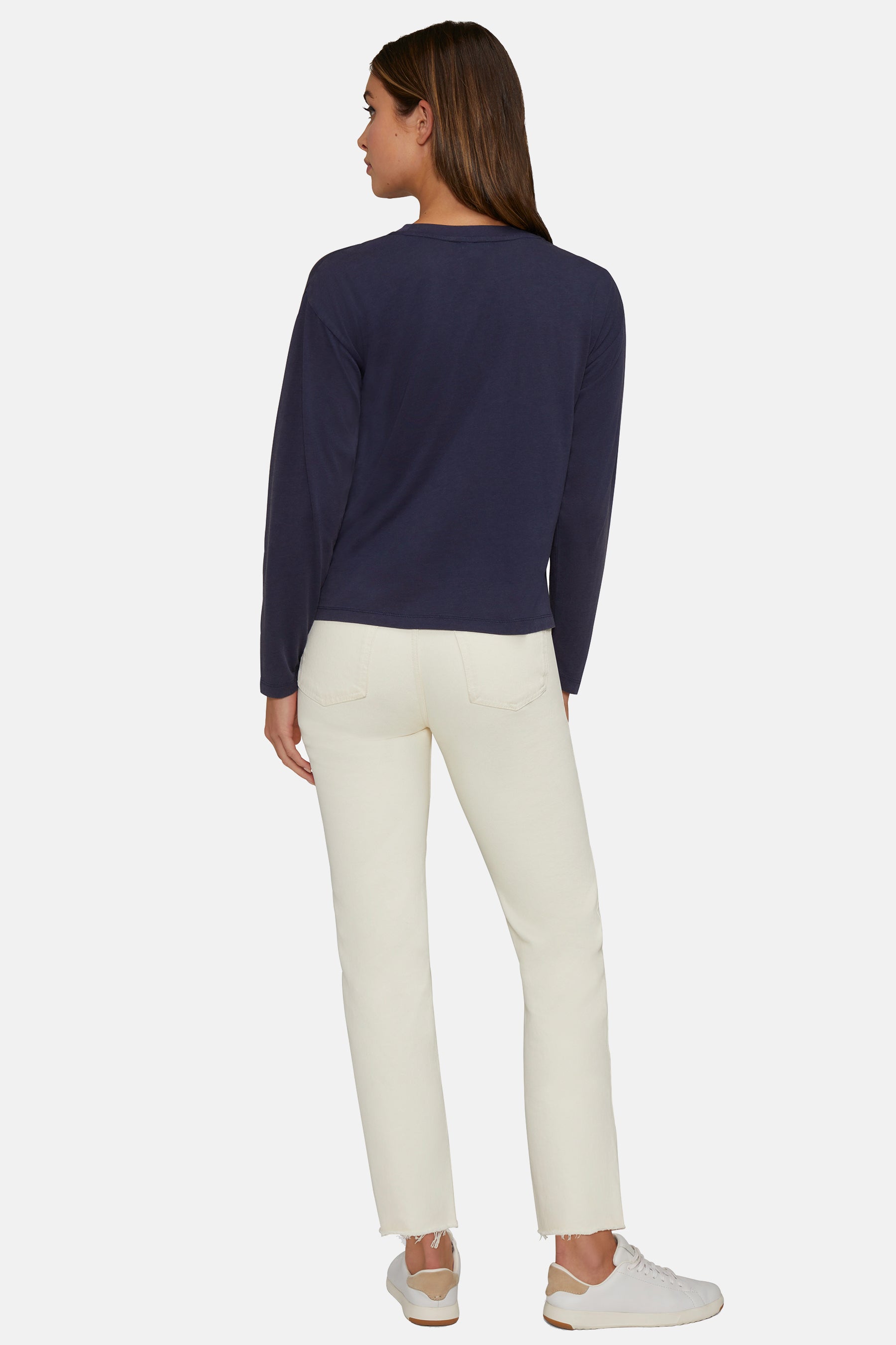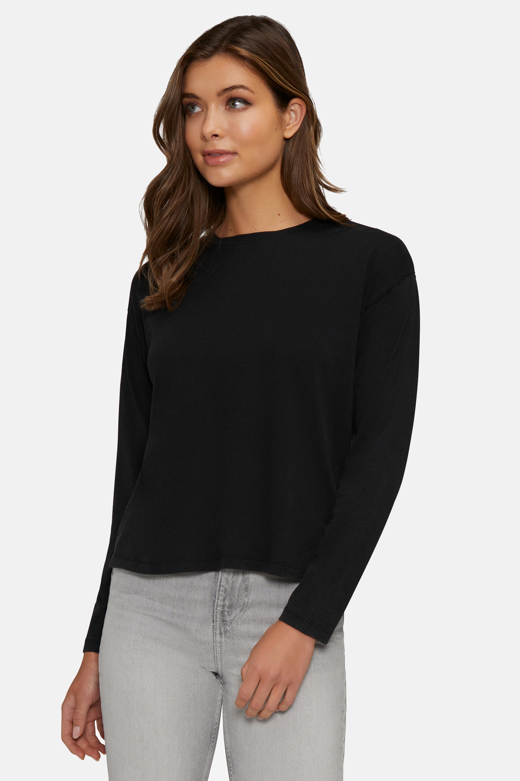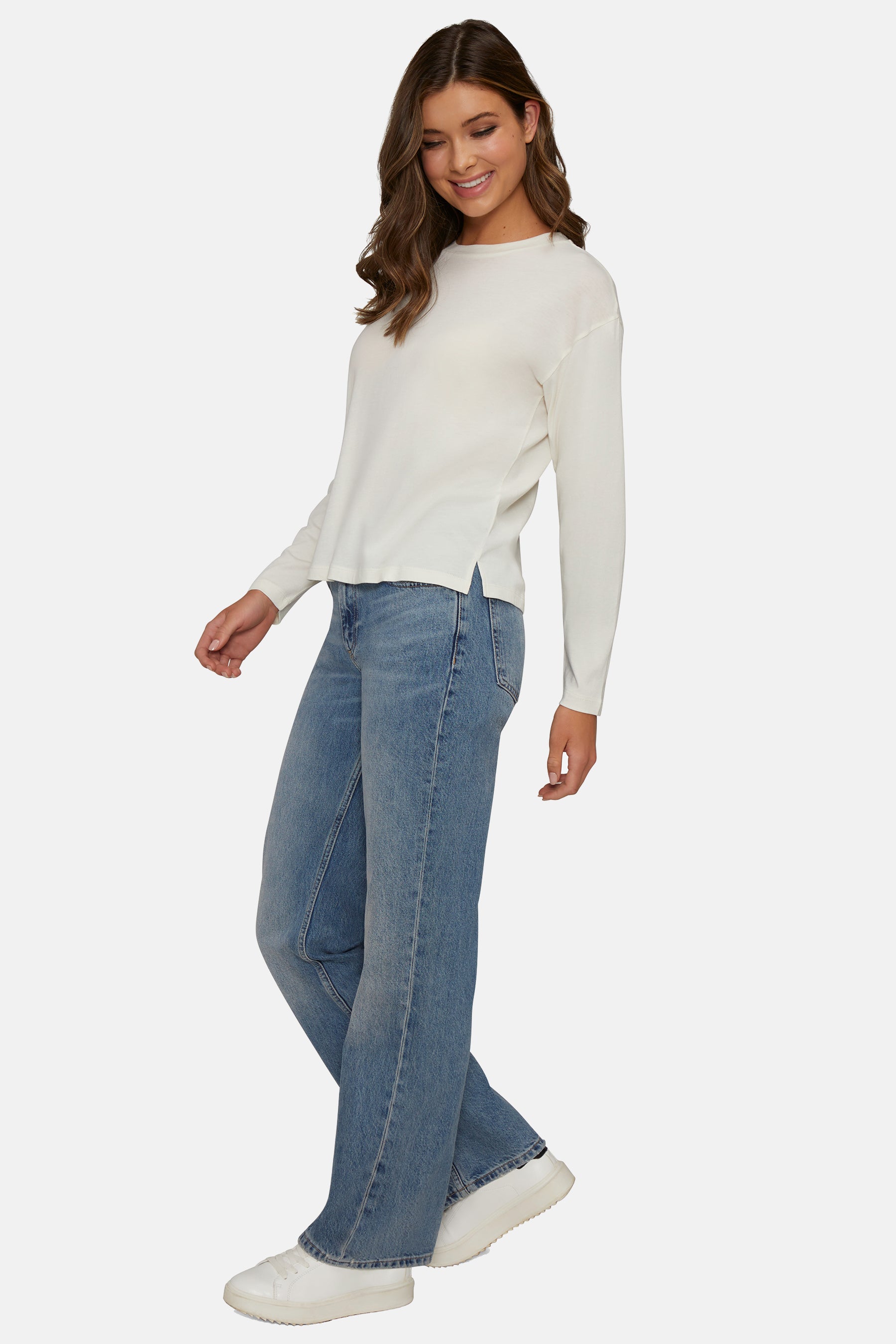 A closet essential to layer or wear alone, the Helena Long Sleeve features dropped shoulders and a classic crew neckline.