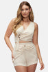 A cropped, sleeveless top you can wear layered or alone, the wrapped Amanda Vest features a plunging V-neckline, a hidden inner closure, and a side strap belt threaded through a ringed buckle.