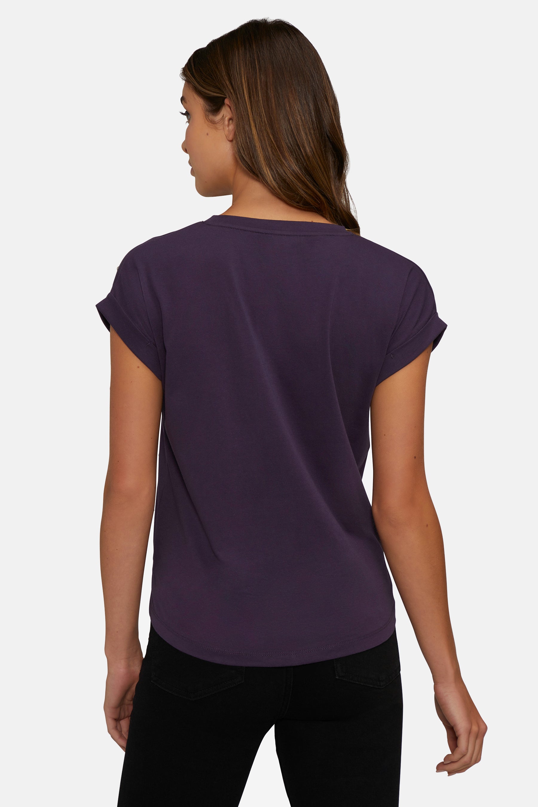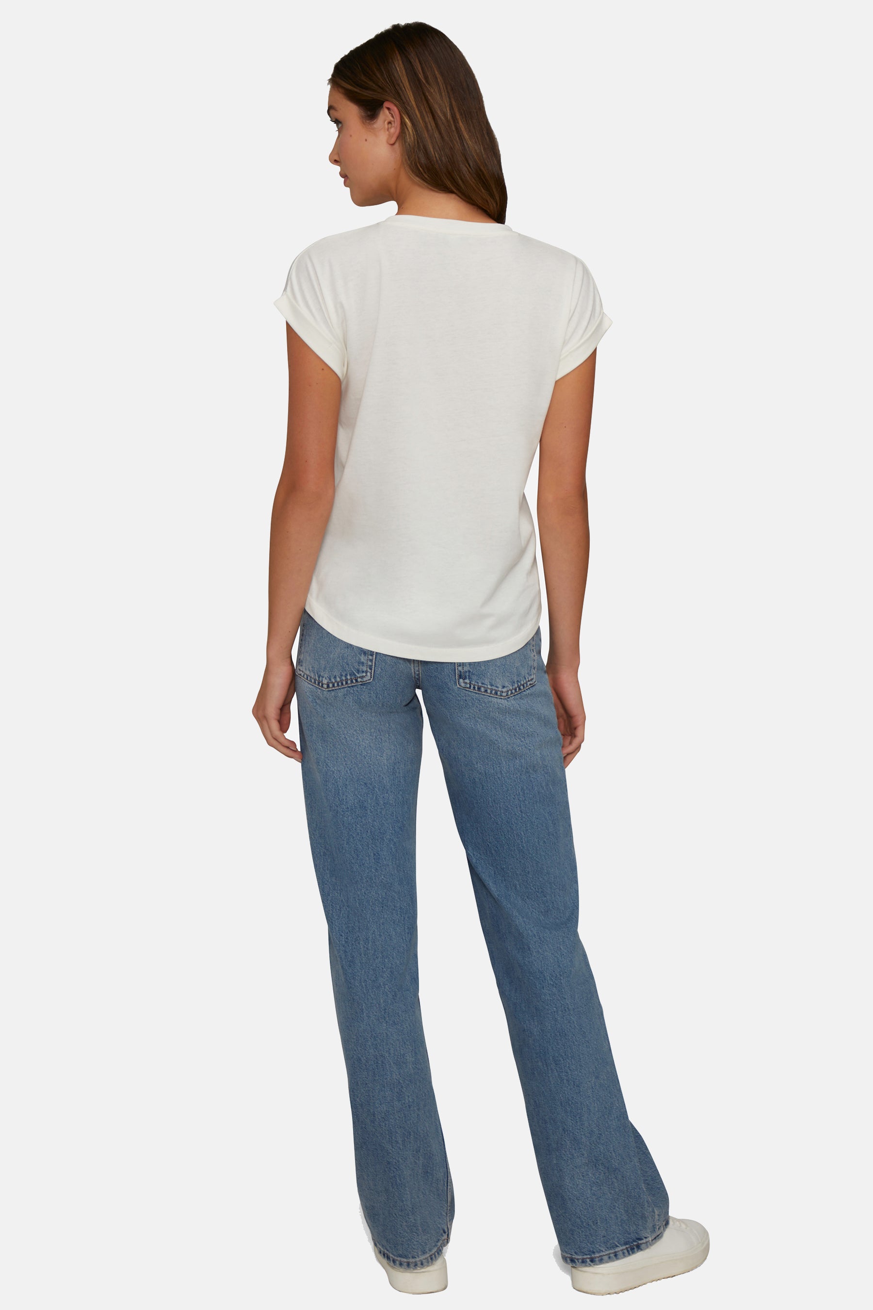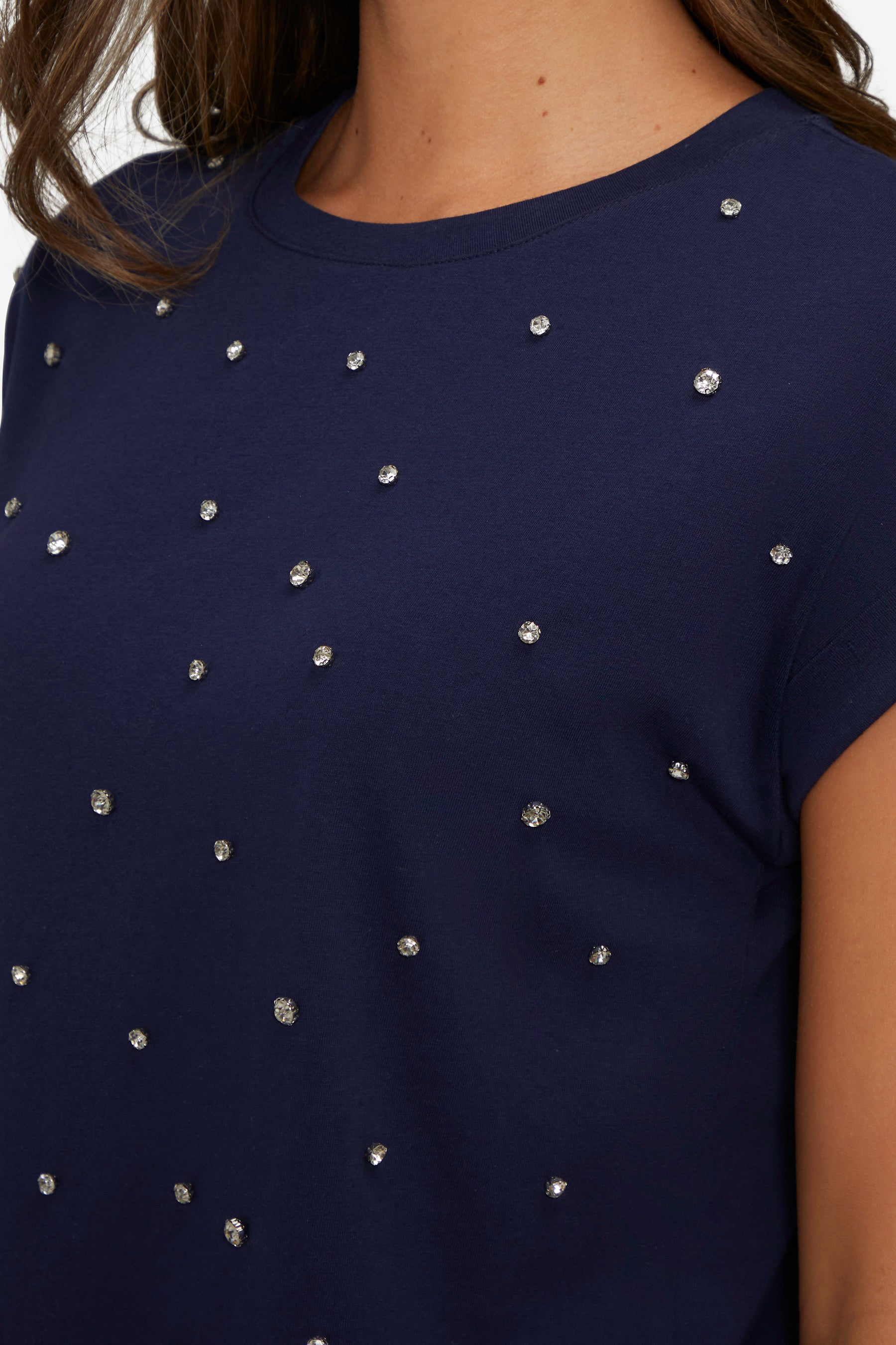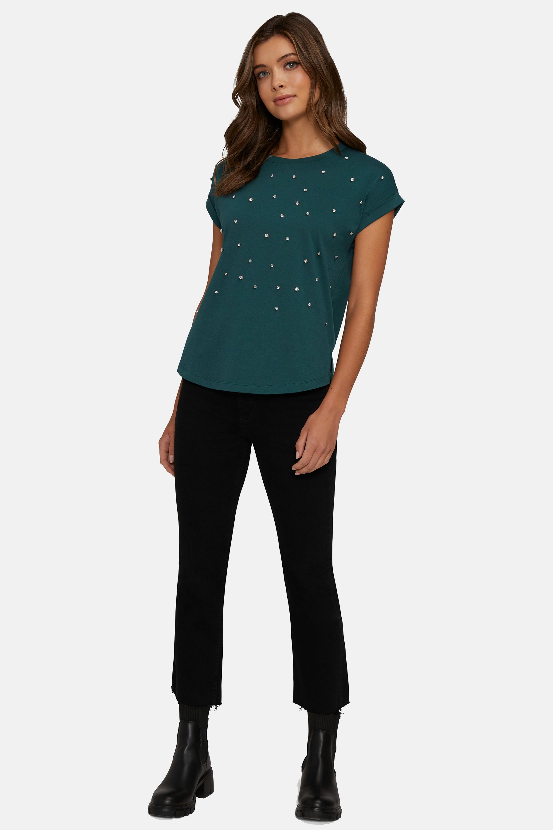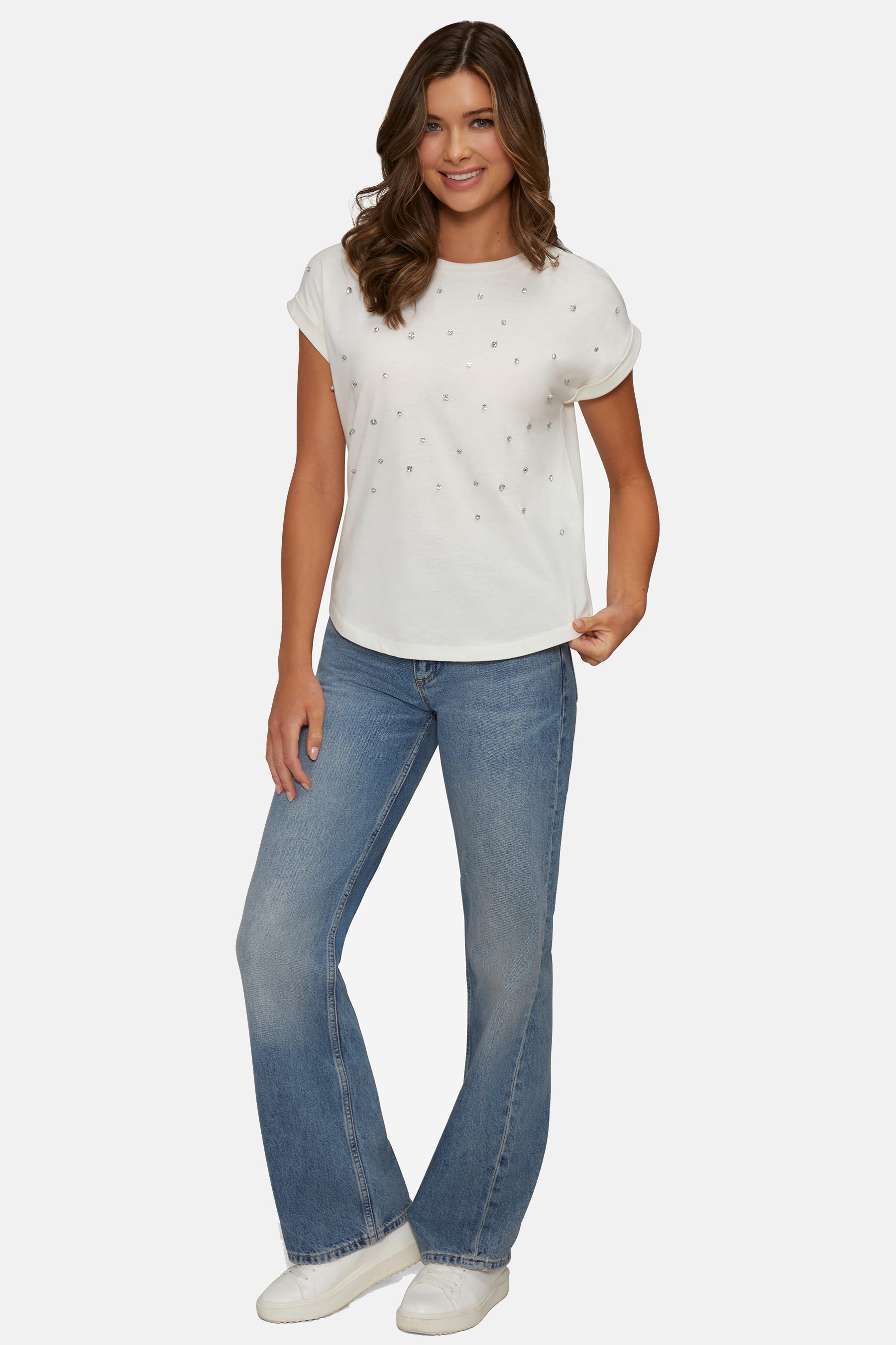A relaxed silhouette in cotton-blend jersey, the Rhinestone Muscle Tee features rolled cap sleeves, a curved hem with side slits, and a scattering of faux jewels for a bit of sparkle.
