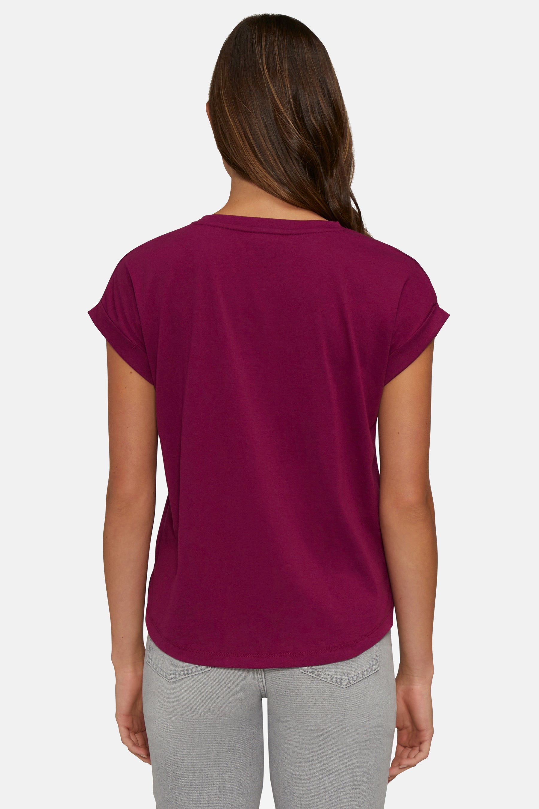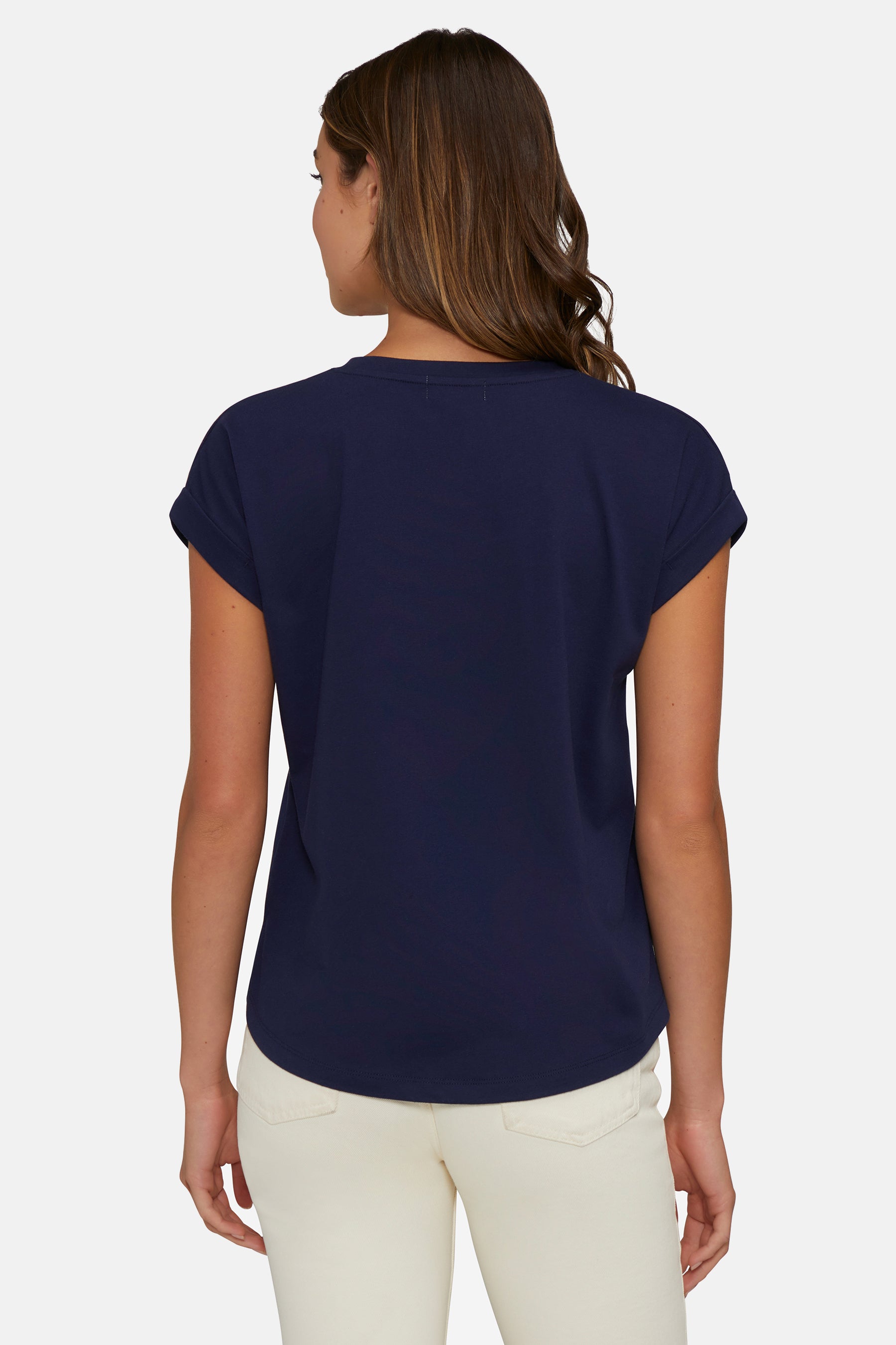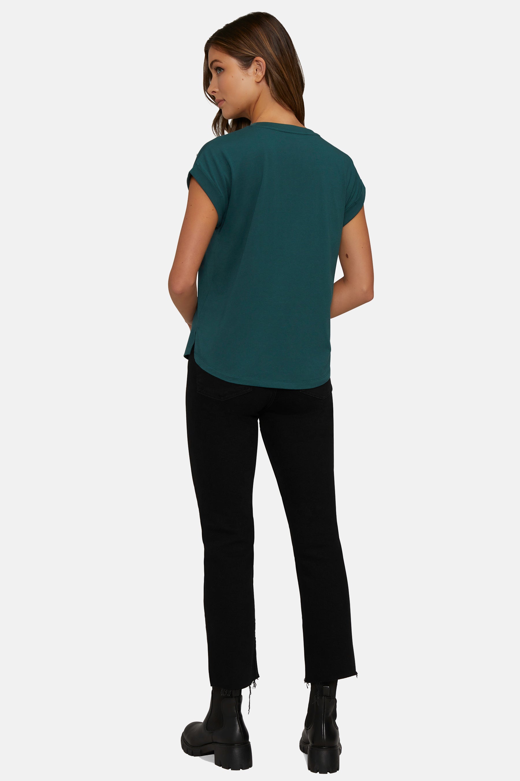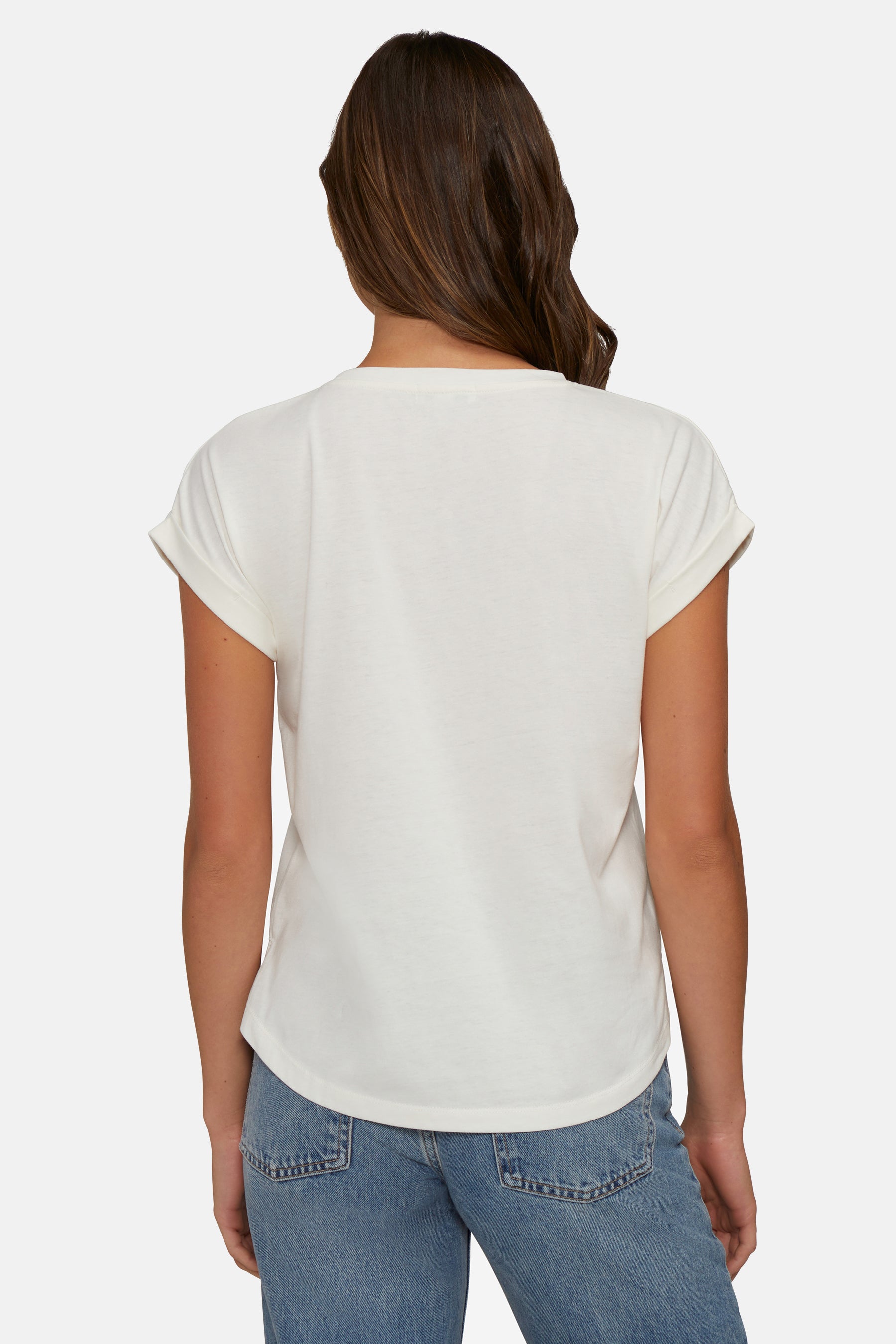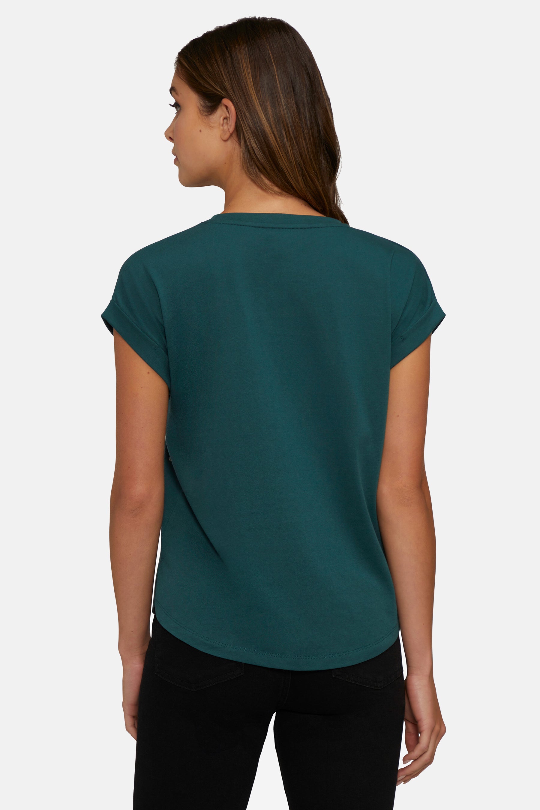 A relaxed silhouette in cotton-blend jersey, the Rhinestone Muscle Tee features rolled cap sleeves, a curved hem with side slits, and a scattering of faux jewels for a bit of sparkle.